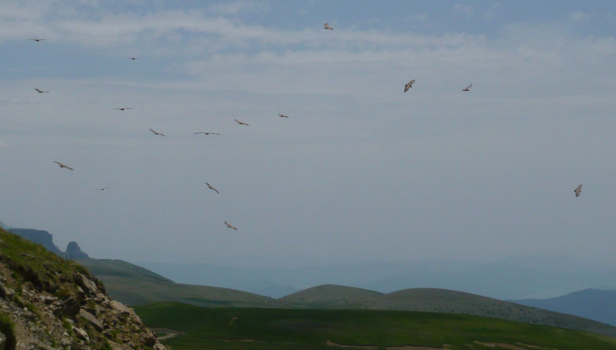 Nach ein bis drei cafe con leches in Jaca ist die Entscheidung gefallen. Ich bleibe auf der Transpyrenaica, der Abstecher in die Sierra de Guara ist gestrichen. So richtig auf dem Weg liegt dieses Gebirge dann leider doch nicht, ich müsste noch einige Straßenkilometer überwinden. Der Hauptgrund jedoch: die Sierra de Guara ist sozusagen das Mekka des spanischen Canyoning-Sports. Bestimmt mit einzigartigen Schluchten versehen, aber die schönsten Stellen sind natürlich nur mit kompletter Ausrüstung zu erreichen. Ich würde mich dort wohl mehl als nur ein bisserl ärgern, daß meine Neopren-Anzüge, Klettergurte und Seile daheim im Schrank liegen. Hätt ichs doch mitgenommen, fünfzig Kilo zusätzlich auf dem Rücken wären doch kein Thema! Canyoning ist außerdem eigentlich nix für Einzelgänger, also ist auch ausleihen keine Option. Und geführte Touren kommen für mich irgendwie gar nicht in Frage, bin gern mein eigener Chef und erlebe meine eigenen Abenteuer. Aso muss die Sierra de Guara eben warten, bis ich mal mit einem anderen Fortbewegungsmittel hier her zurückkehre.