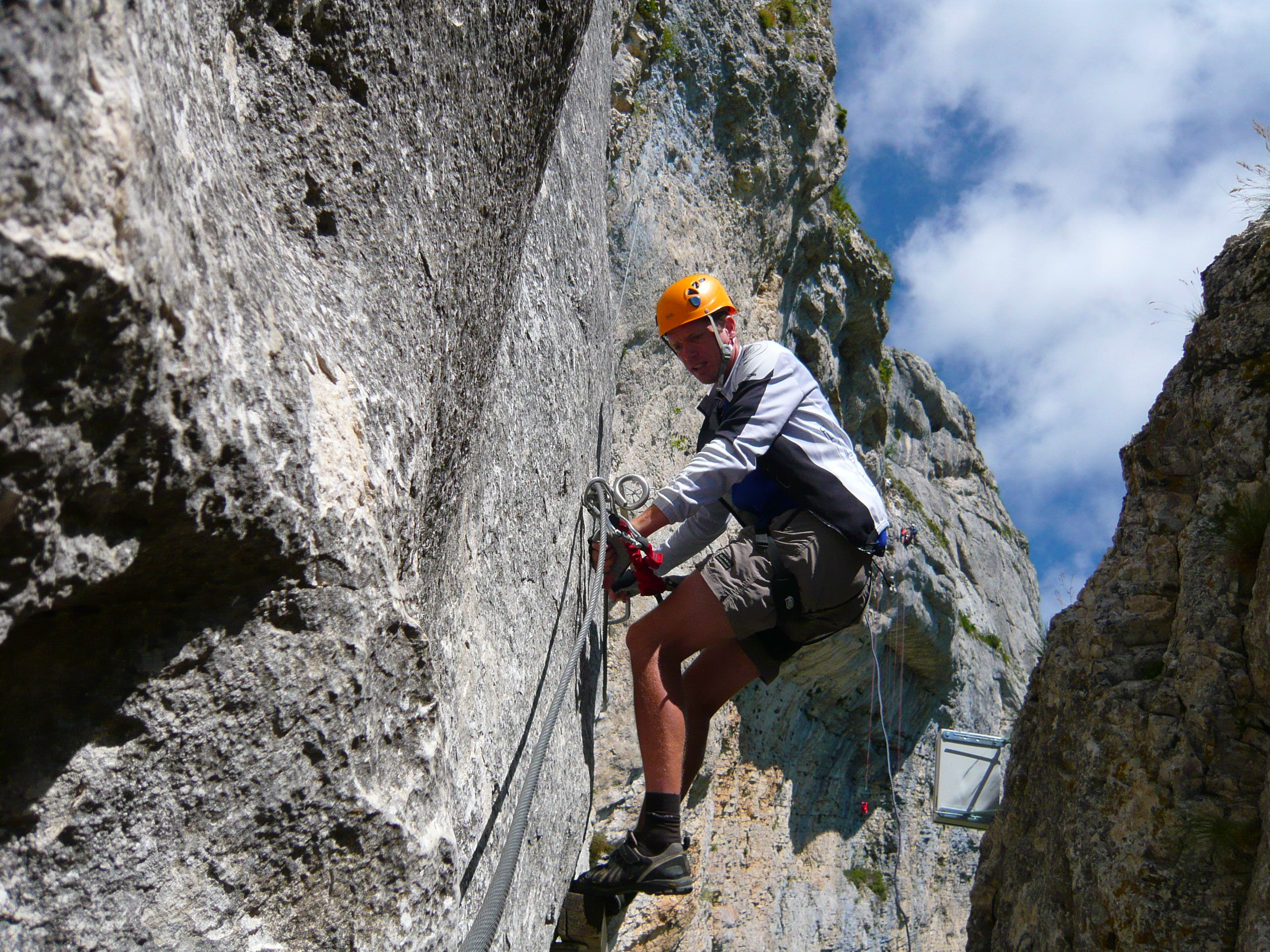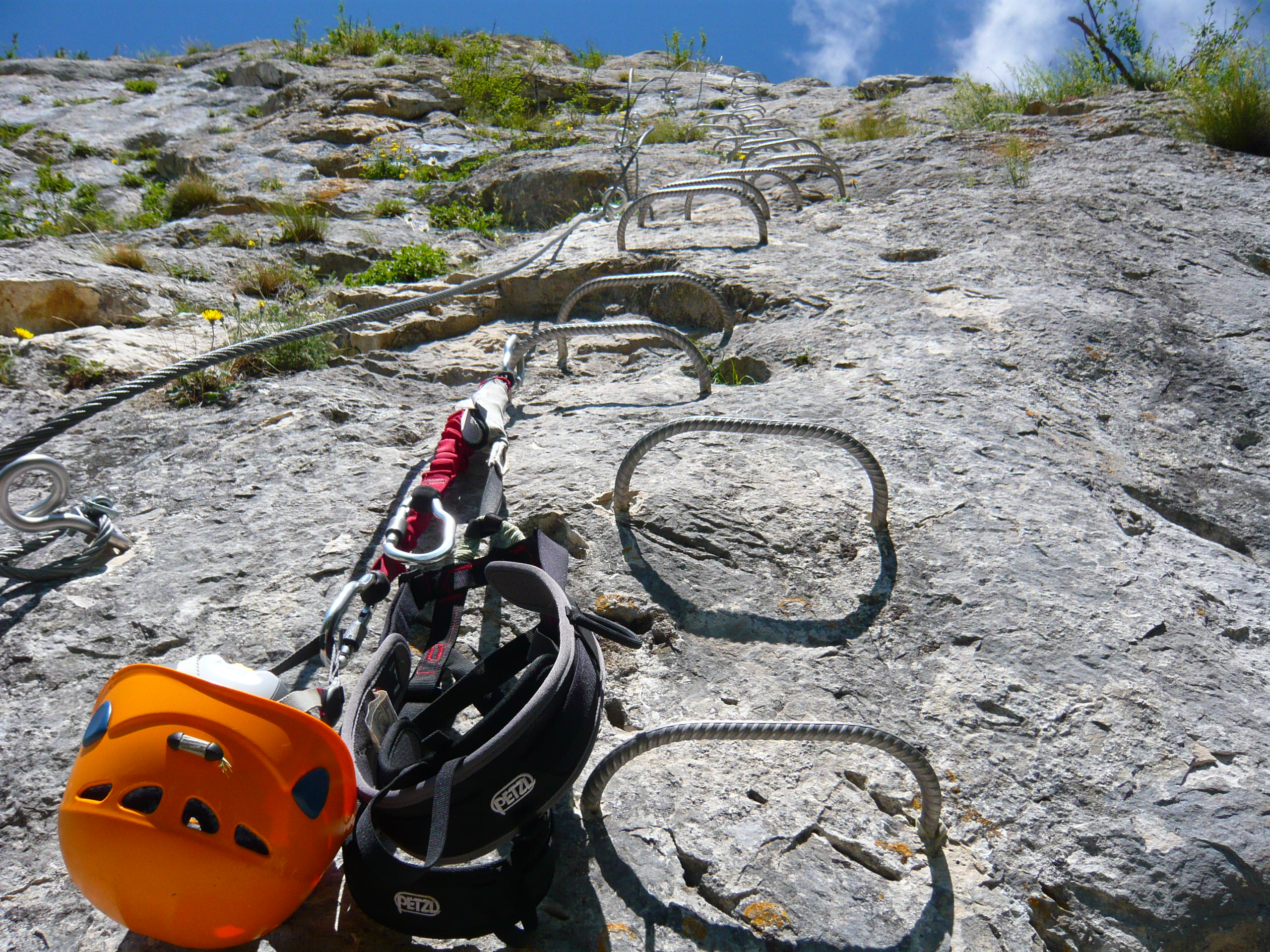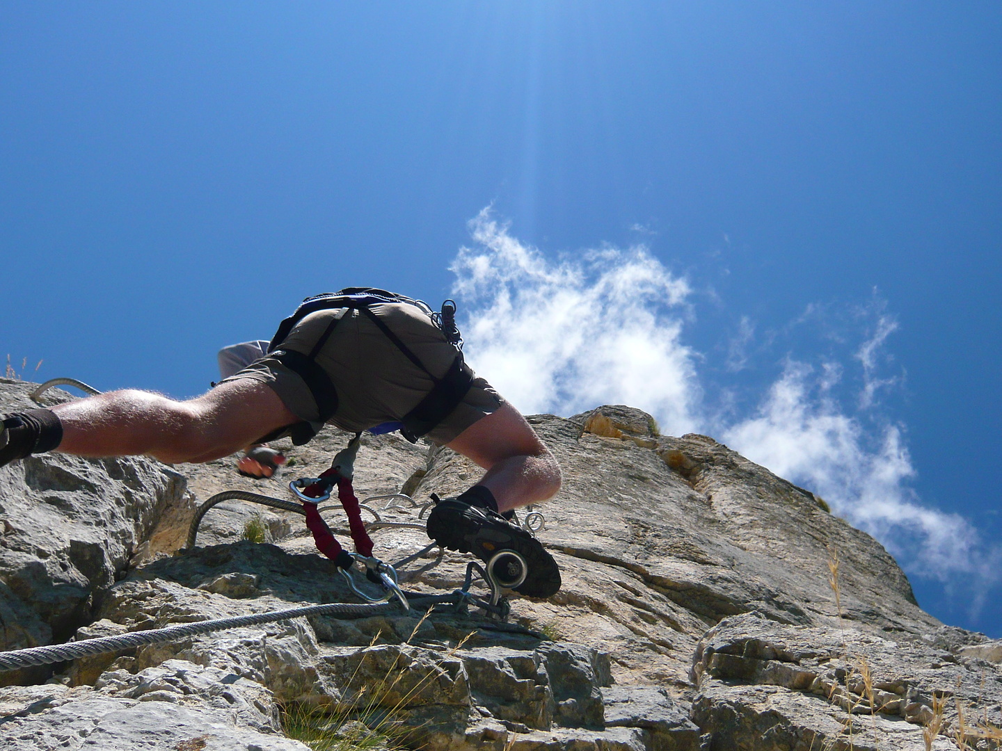 Aufi aufn Berg! Einstieg in die Via Ferrata Chironne, schon gleich ziemlich senkrecht.