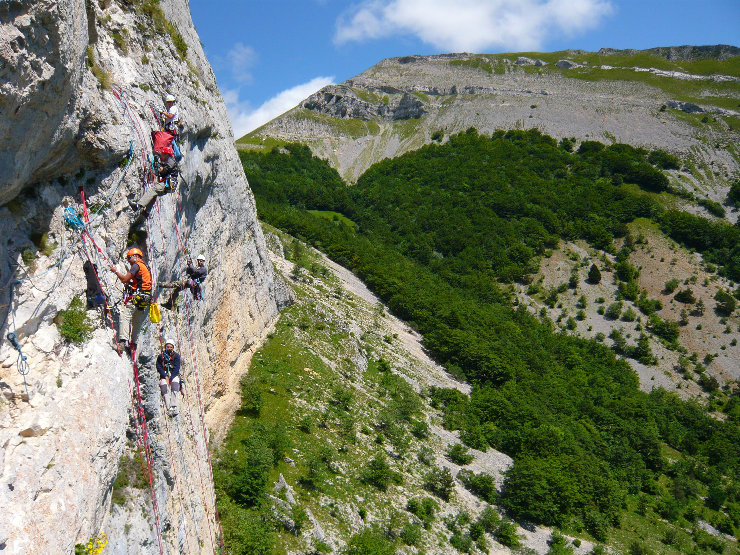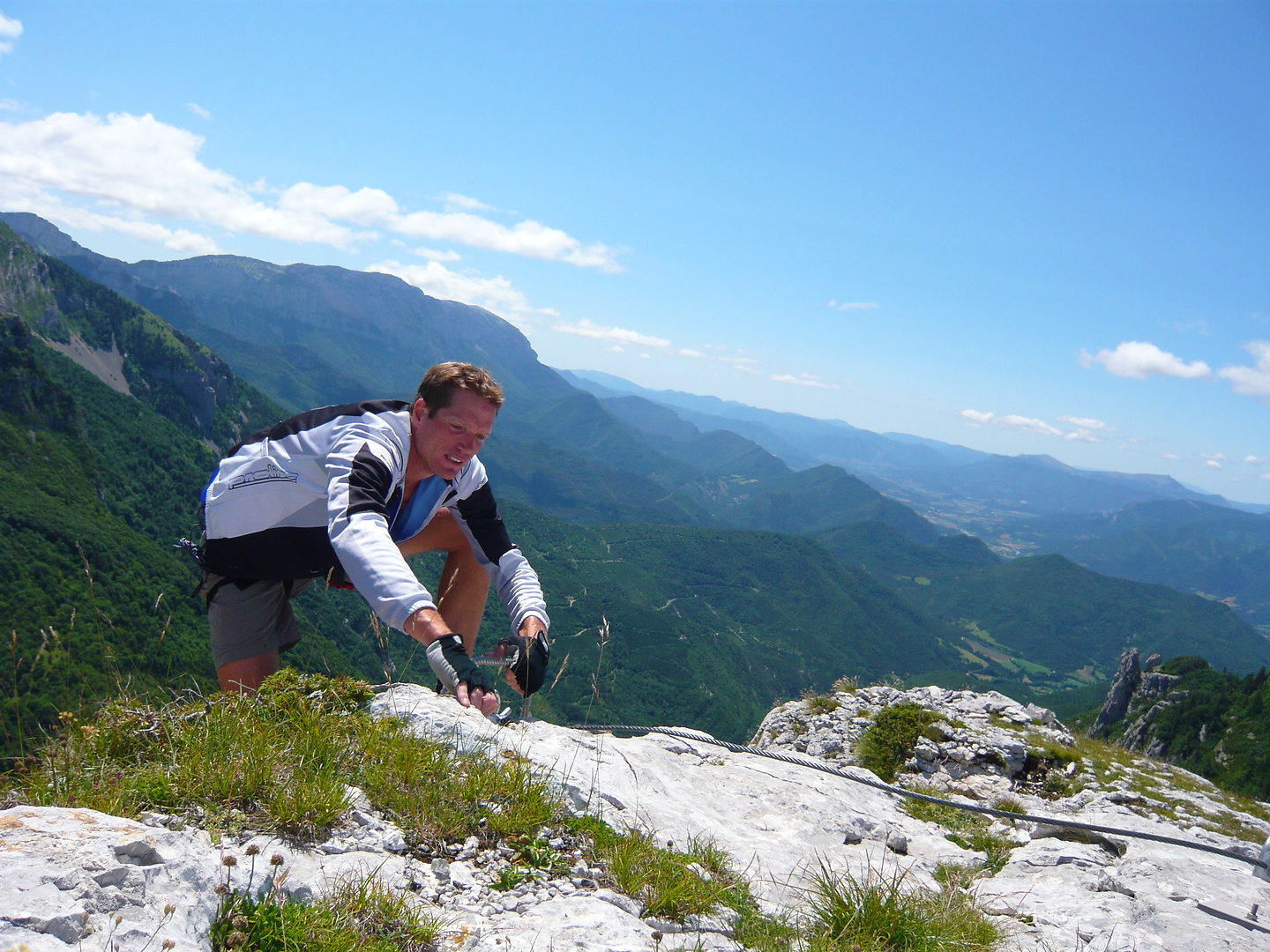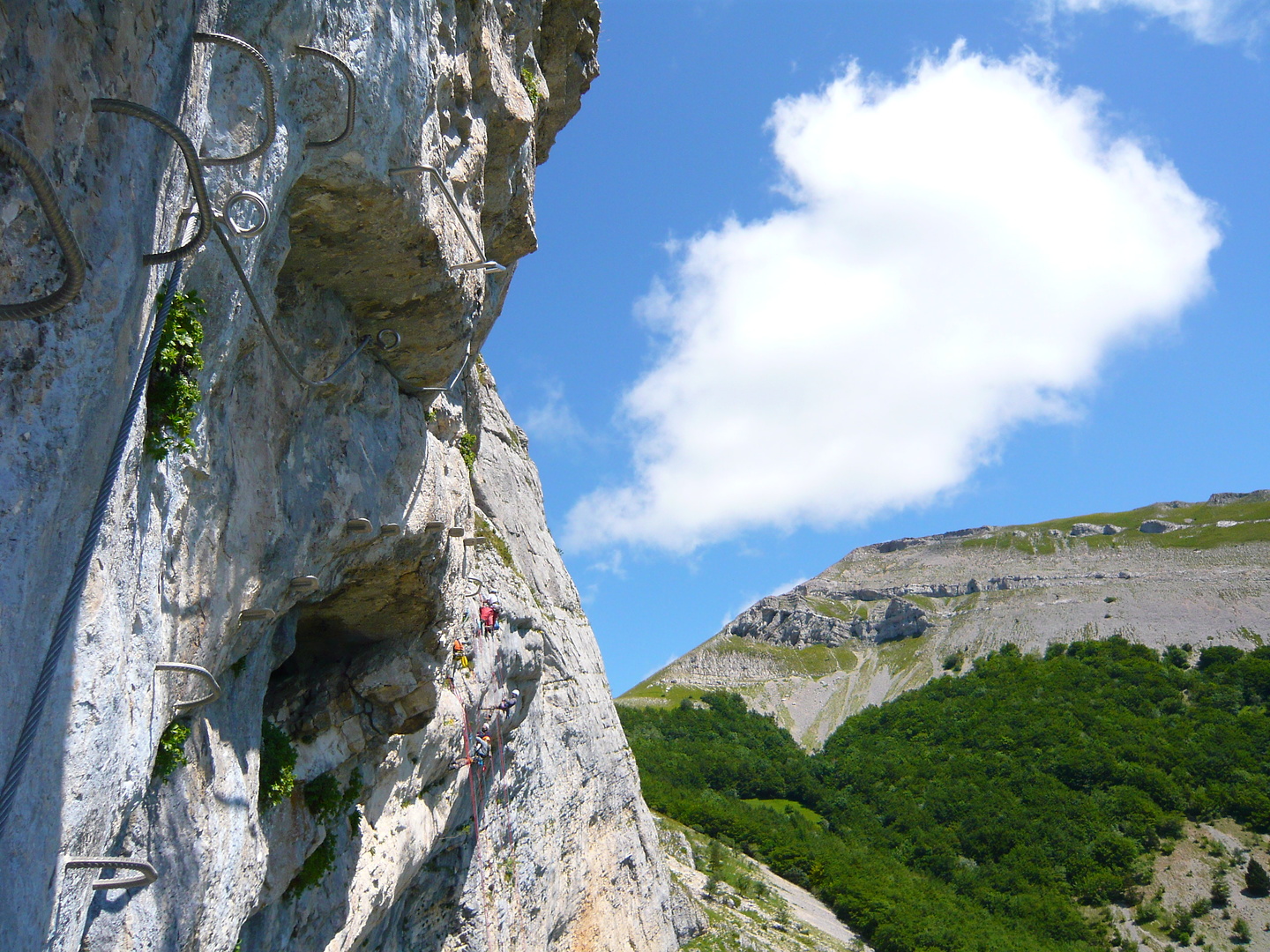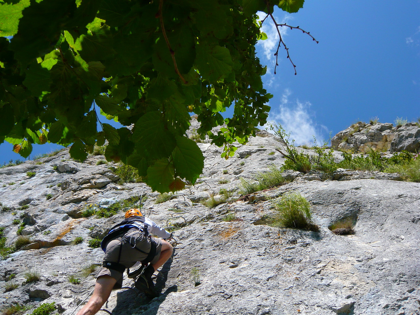 Aufi aufn Berg! Einstieg in die Via Ferrata Chironne, schon gleich ziemlich senkrecht.
