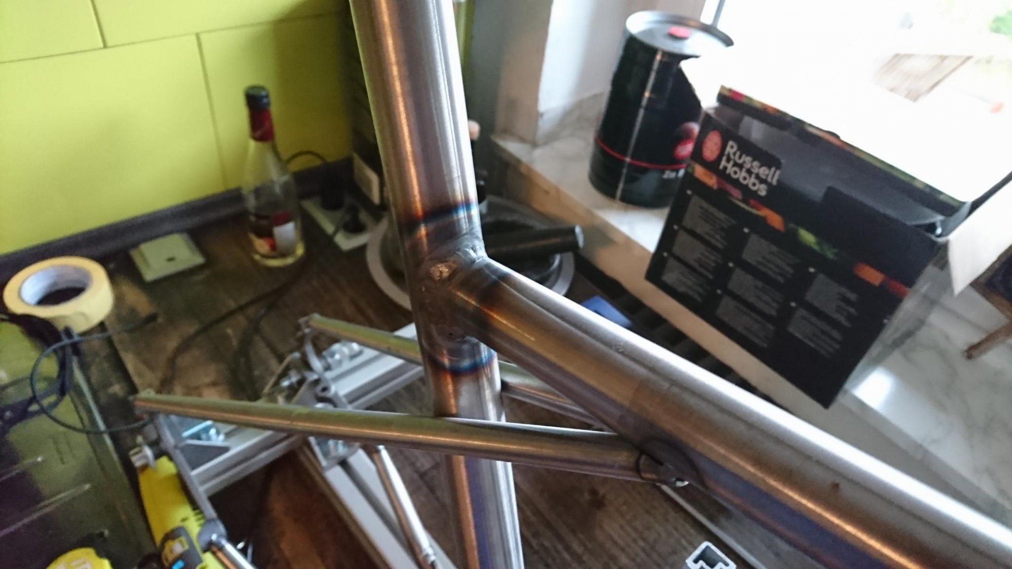 Füllen des Spaltes am Unterrohr war übrigens kein Problem. Das ging wunderbar. Immerhin dafür hab ich wohl ein Händchen.