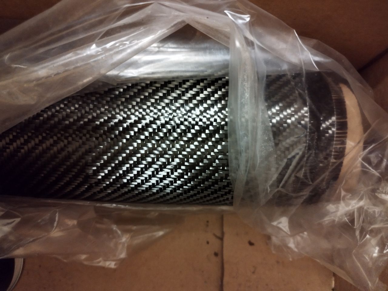 Eine Carbon-Matte (hier 200g/m^2 Körper Gewebe) grob zurecht scheiden. 4 Lagen sollten ausreichen.