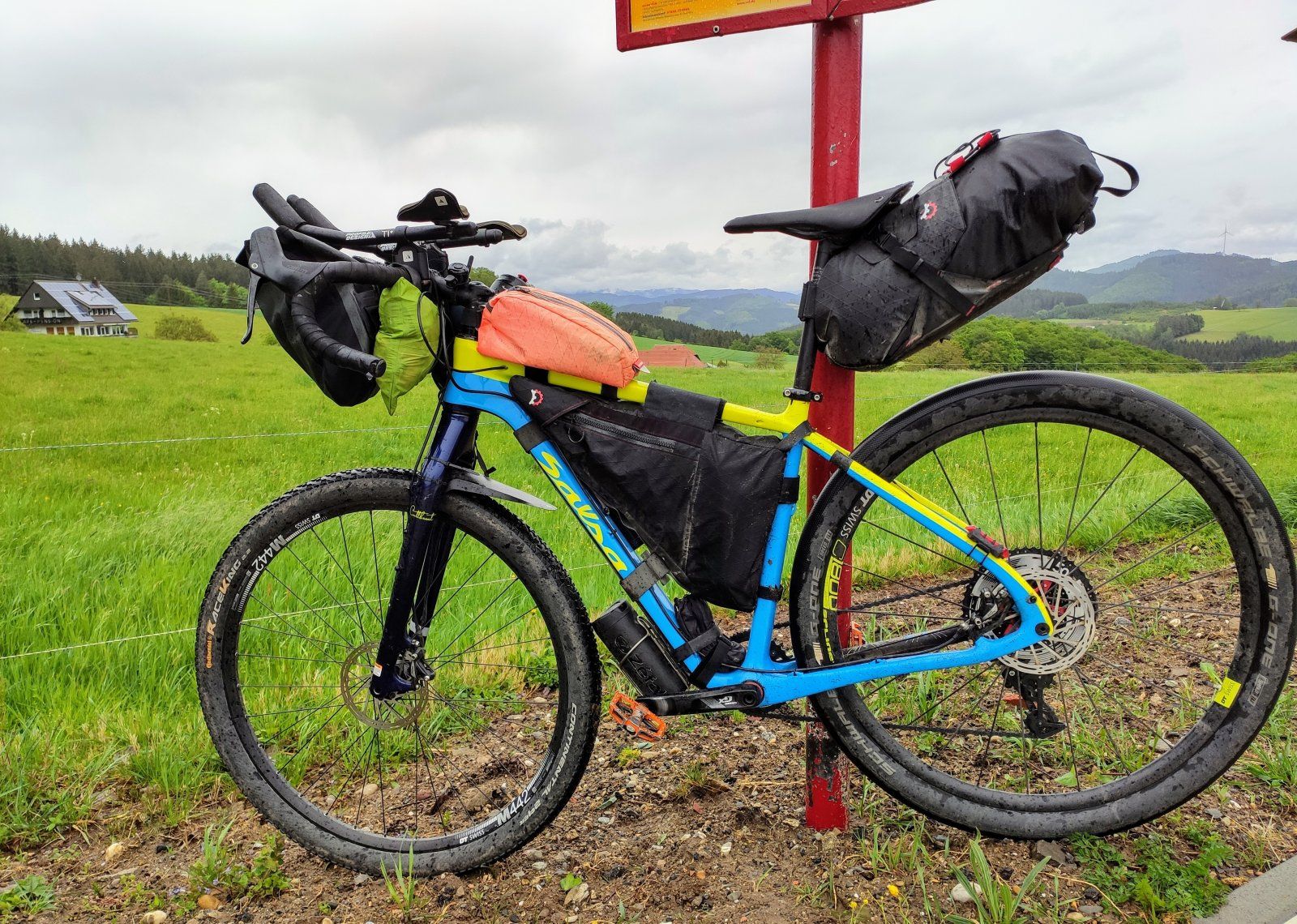 (habe einen Setup für eine längere Tour ausprobiert, daher soviel Zeug am Velo...)