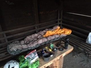 Unsere Hütte für die Nacht. Das Zelt hätte ich auch Zuhause lassen können...