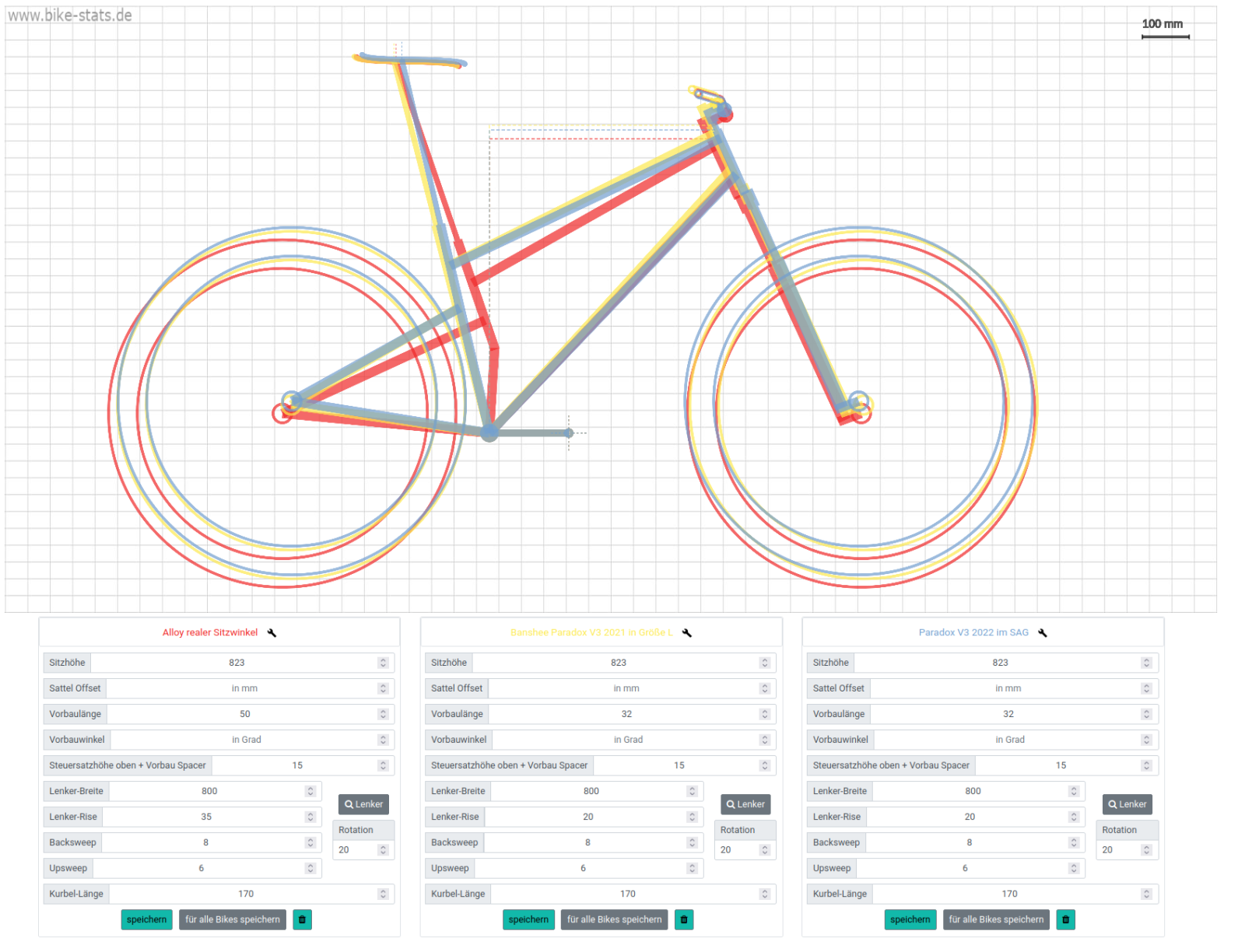 Die Auslegung ist bei den Bike sind der Endauswahl ja generell ähnlich. Das Paradox gefällt mir wegen dem steilen Sitzwinkel am Besten. Allerdings ist der Stack recht hoch, aber noch gerade so passend.