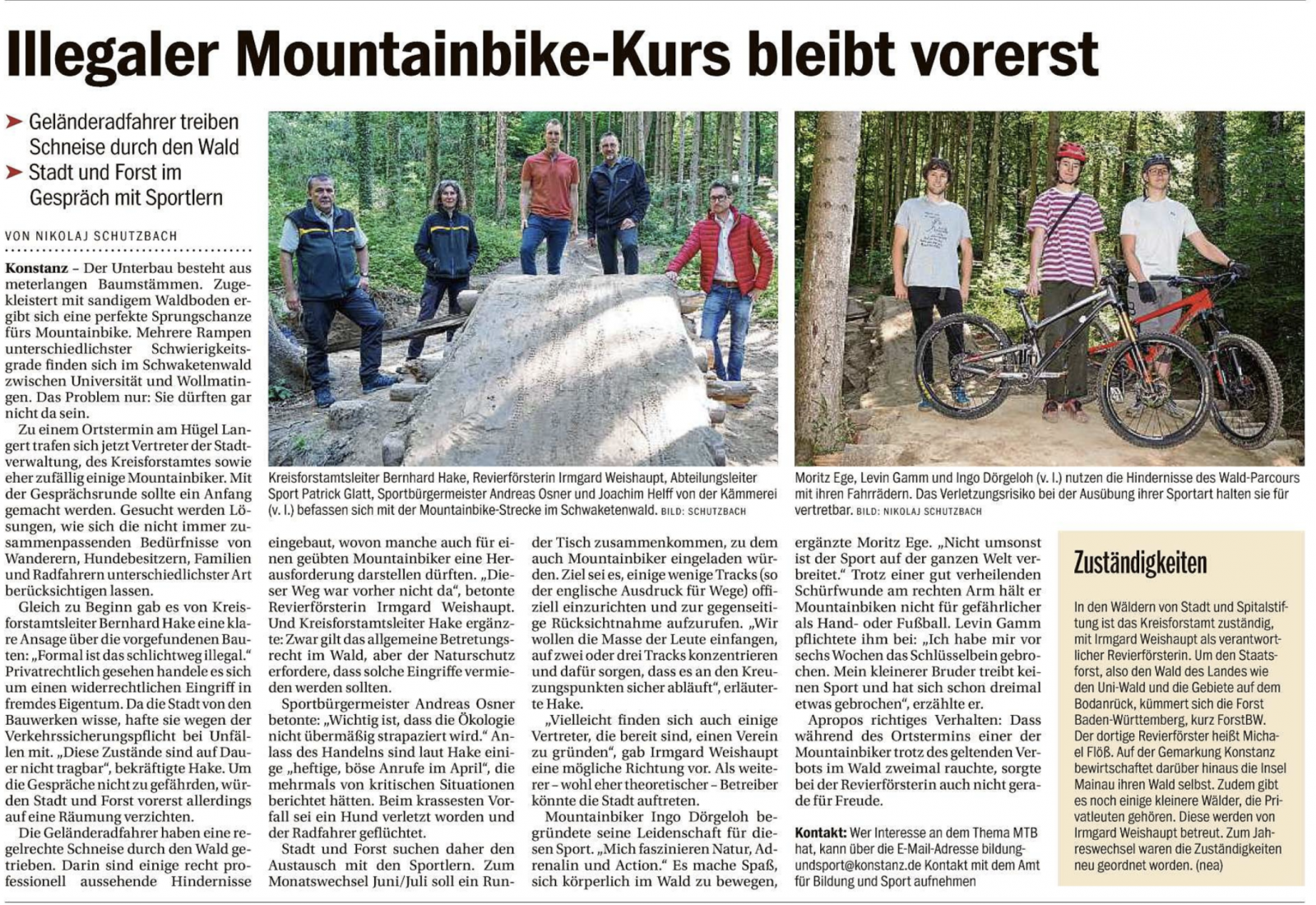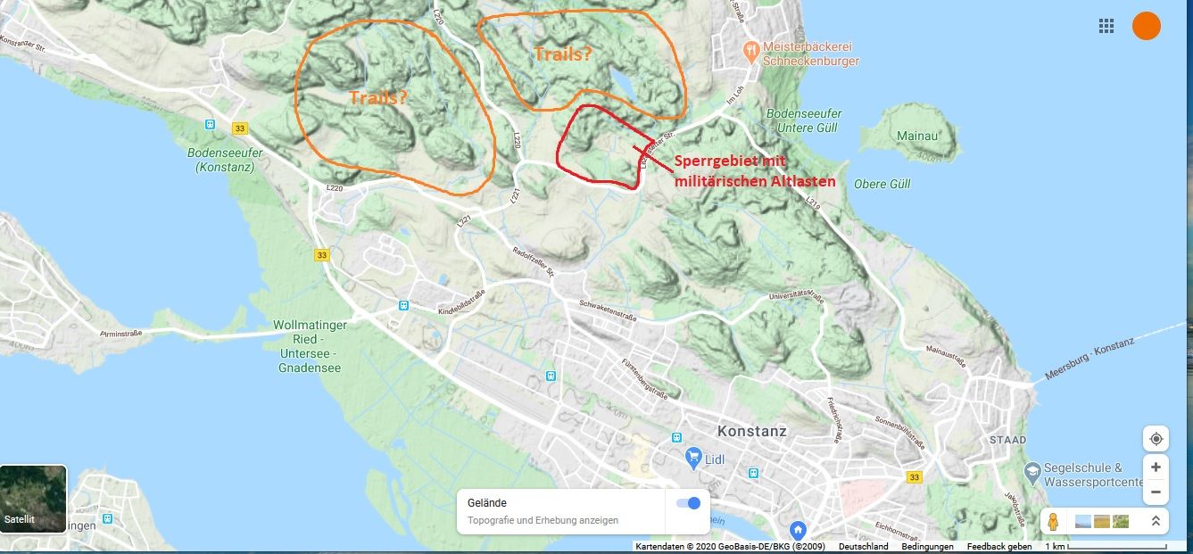 "Bzgl. der Trails im Mainau Wald ist einiges im Gange. Habe schon mit XXXX vom Sportamt gesprochen. Die wollen ein Gespräch mit den Beteiligten und es wird wohl darauf hinauslaufen, das 1-2 Trails genehmigt und alle anderen verboten werden.
