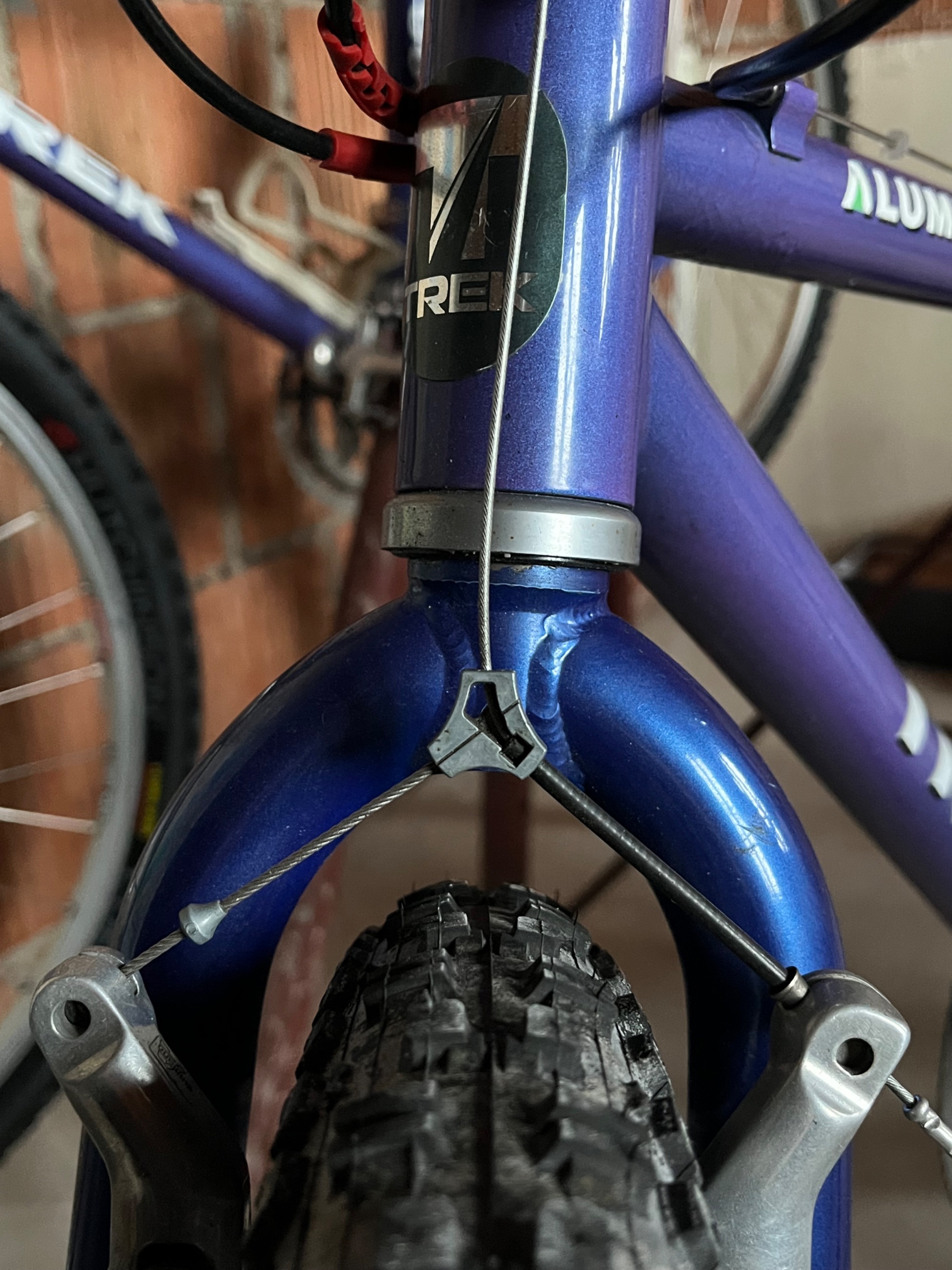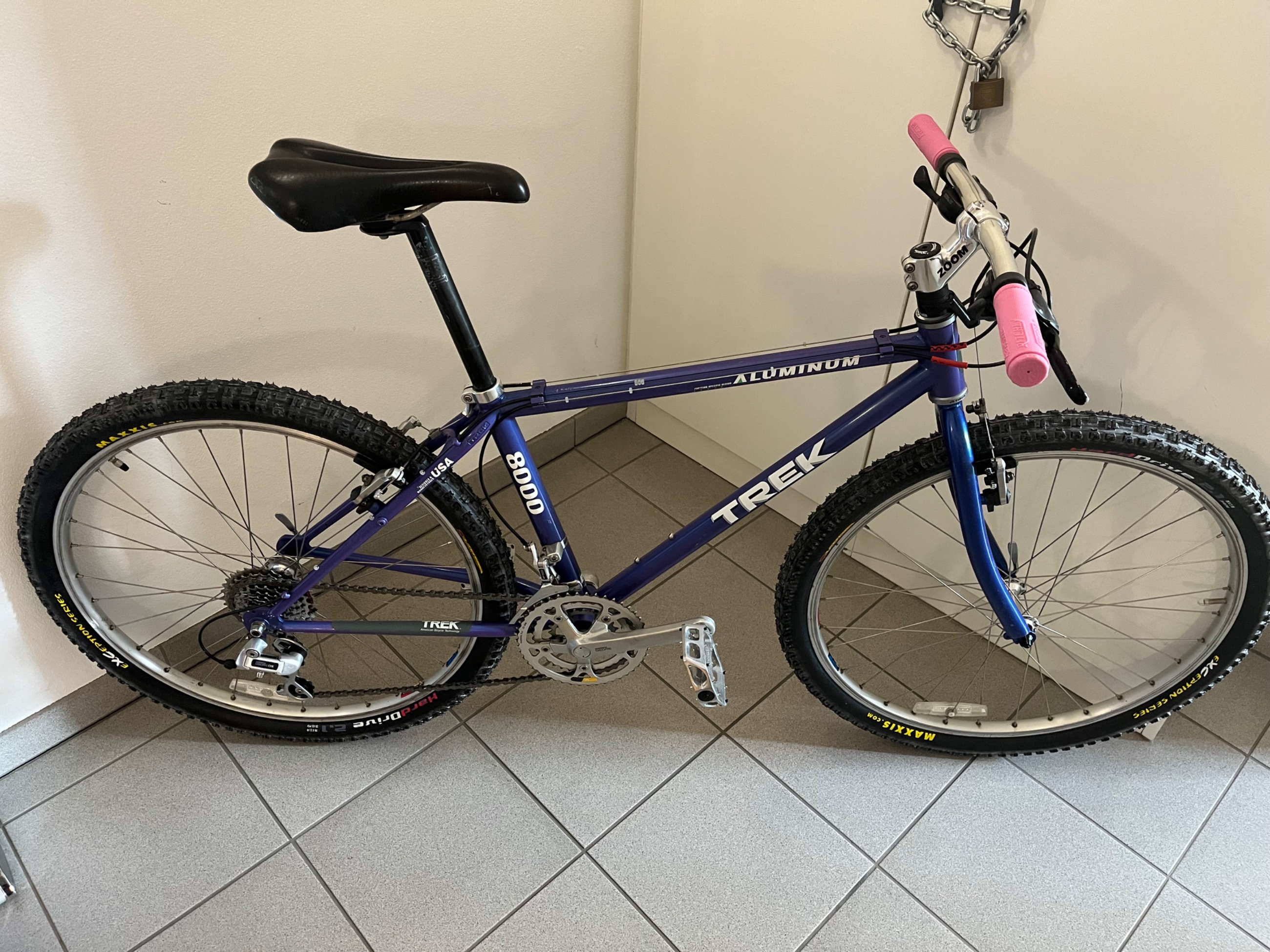 Das Trek 8000 war damals das Top Alu Modell von Trek. Hochwertiger Easton E9 Alurahmen. Eine der coolsten Lackierungen von Trek die es jemals gegeben hat. Farbe Lunar, das Rad ändert im Licht die Farbe von blau bis lila, wirklich sehr schön (siehe Detailbilder).
