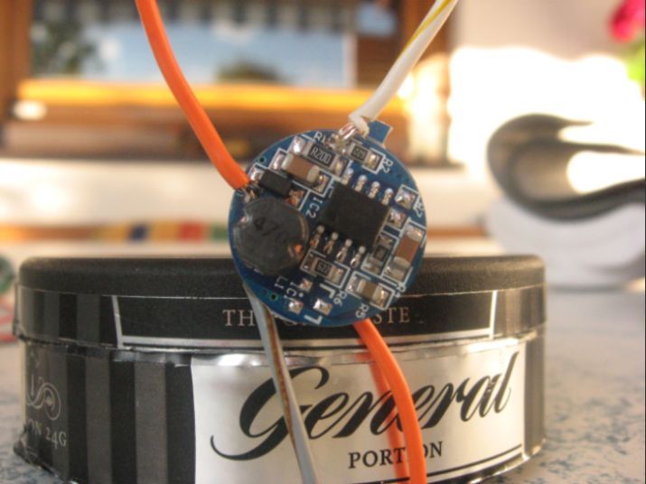 Na mal im Ernst. Ich hab nur zwei Drähtchen aus der Lampe herausgeführt. Mit denen werden zwei der LEDs gebrückt.
