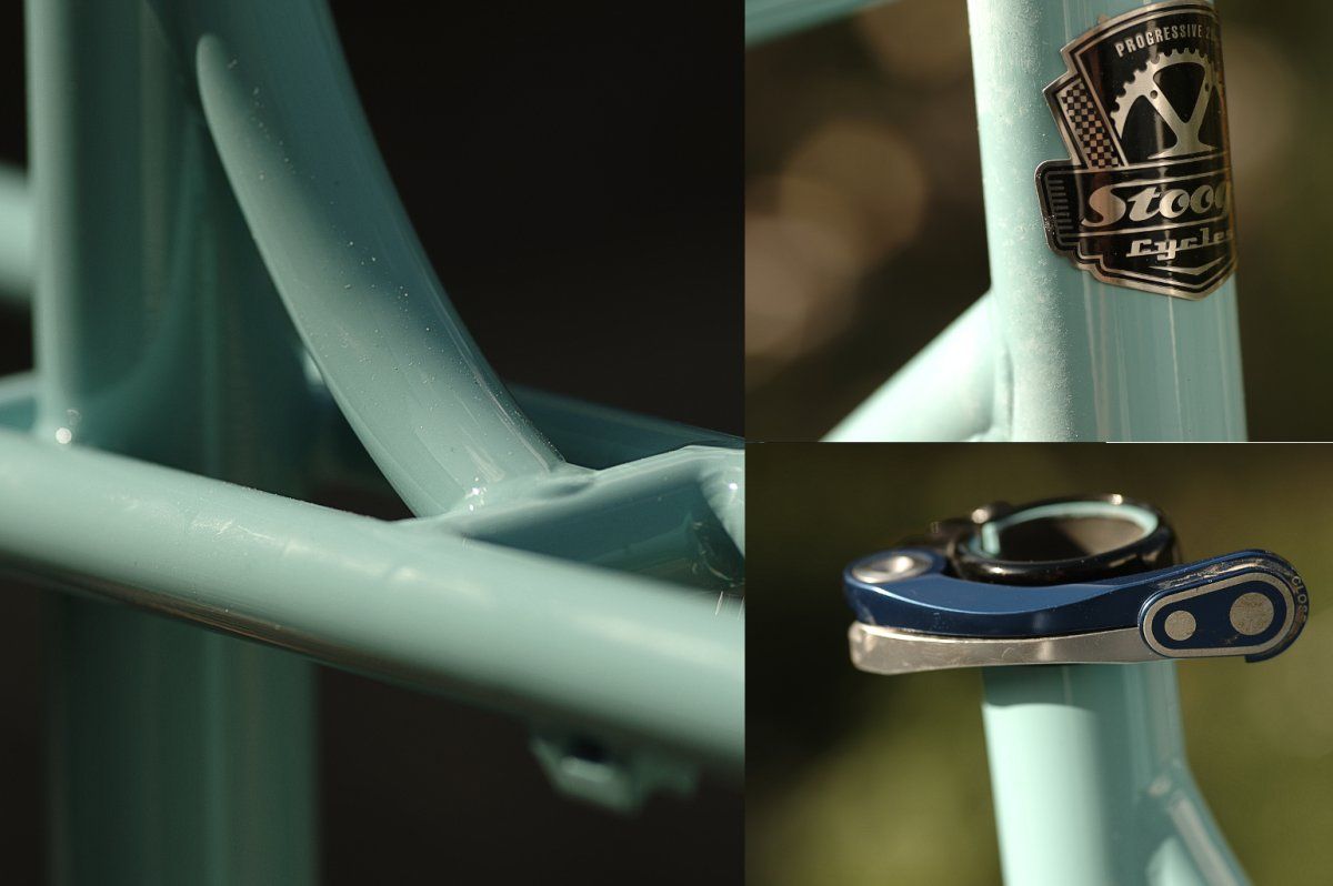 Erste Impressionen vom Rahmen. Weitere Infor zu Rahmen hier: http://stoogecycles.co.uk/ Für das Modell im "plum crazy" hatte ich schon zu viele blaue Teile. Aber auch das "sky blue" ist ganz schön krass. Auf den Bildern ist es definitiv zu hell. Gewicht vom Rahmen liegt bei 2850 Gramm das der Gabel bei 1360 Gramm. leicht ist anders, aber ein Canfield Nimble9 oder Jeff Jones Spaceframe dürften auch nur unwesentlich leichter sein. Wenn überhaupt. Laut Andrew Stevenson von Stooge Cycles ist es der erste Rahmen in Deutschland. Jetzt müssen nur noch die fehlenden Teile kommen damit es endlich losgehen kann. Auf längere Sicht muss ich auch noch die Reifenfrage klären. Ich vermute meine 2.2er MK werden etwas popelig aussehen.