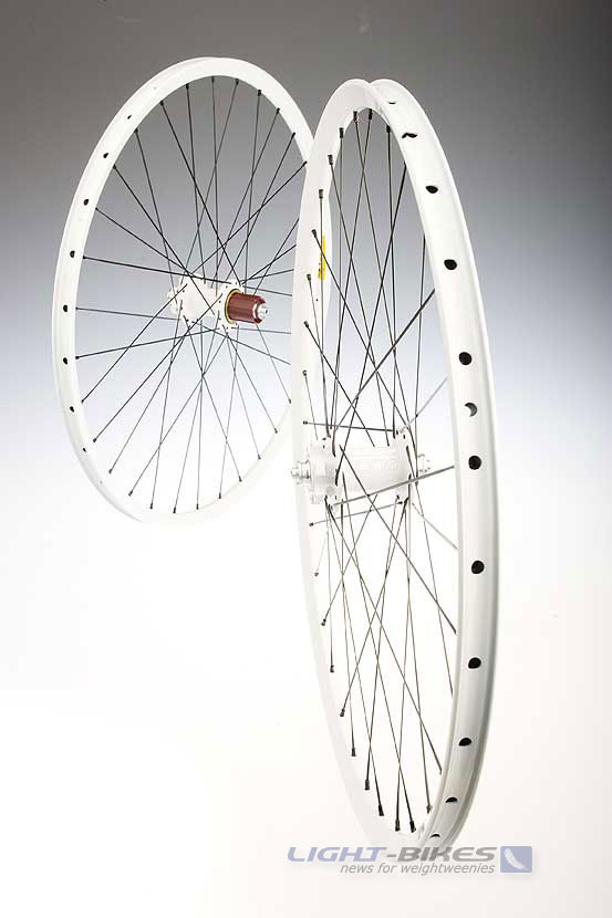 ist nix anderes: weiß gepulverte Tune naben, CX ray bzw aerolite mit weiß gepulverten FRM XMD 333 - was es bringt außer das es schwerer ist als eloxiert und nach 50m aussieht wie 101 Dalmatiner erschließt sich mir nicht