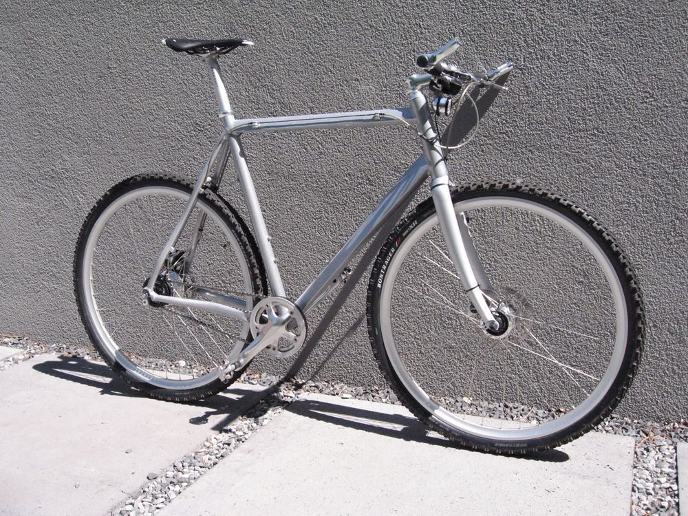 Also werde ich den Rahmen schon mal vor dem Sperrmüll retten. Immerhin ist der zweimal handeloxiert worden. Der erste Versuch zu hartanodisieren schlug fehl, wir wussten die Alu-Sorte nicht und das Ergebnis war grün statt schwarz. Also reisten die Rahmen hin und her und es war dann eloxieren und das Ergebnis ganz gut.