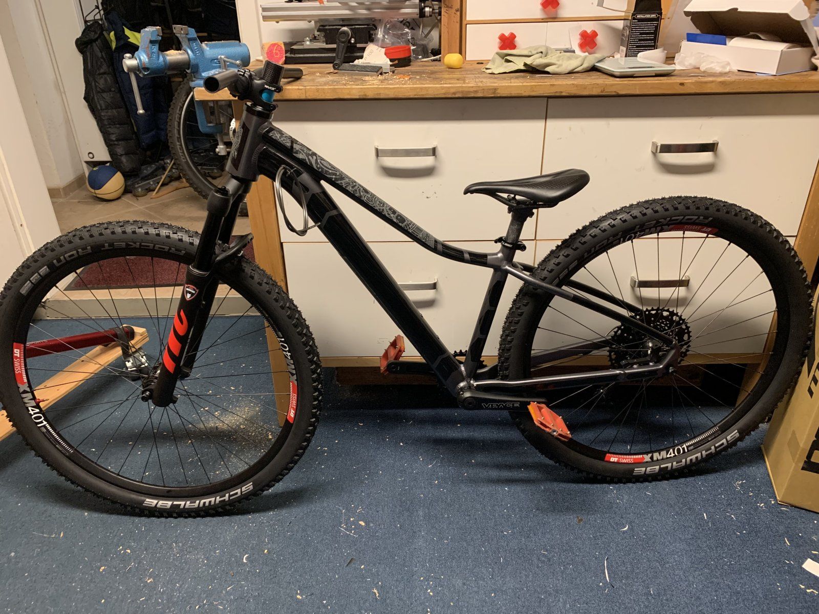 Gewichtsmäßig wird es wohl auf 10,2kg + Tubeless-Milch hinauslaufen. Cube baut echt schwere Rahmen... Aber die niedrige Überstandshöhe war entscheidend.