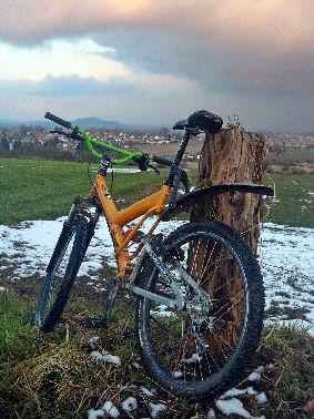 im laufe der Zeit wechselten öfters die Stütze,Vorbau,Reifen,Sattel und die Gabel ... aber die roten Teile und die Schaltung blieb....