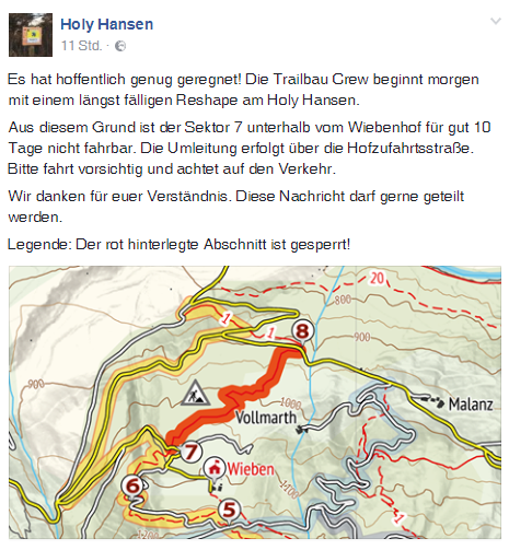 Nur zur Info, die Provinz Bozen ist anscheinend ernsthaft dabei ein neues Wegenutzunggesetz auszuarbeiten. Der zuständige Landrat, Schuler, geht davon aus, dass es zu einem allgemeinen Bike-Verbot auf Wanderwegen kommt und nur auf extra ausgewiesenen Strecken Bikes erlaubt sein sollen. Ein entsprechendes Projekt sei bereits in Arbeit. Quelle: Tageszeitung L'Alto Adige und Trentino von heute.