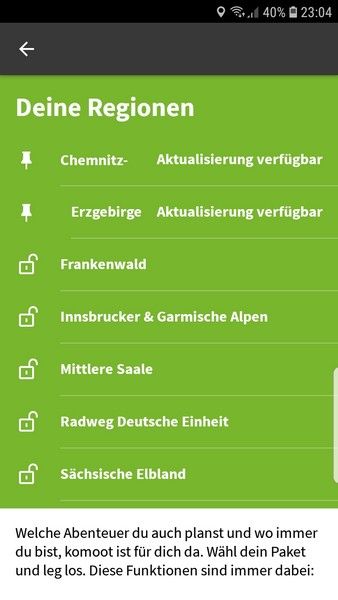 Hat jemand in der Zwischenzeit eine Lösung für mein Problem mit den Aktualisierungen der Regionen. Der Support kann mir keine Lösung anbieten, versteht nicht mal mein Problem. Man behauptet die Karten aktualisieren sich mit der App. Schönes WE.