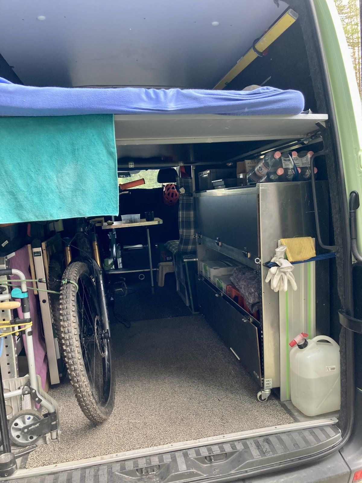 Fahrräder sind Hinten drauf und doppelt abgesperrt. Nicht perfekt, leider ist aber die Heckgarage einfach zu klein für 180mm 29er und es ist der einzige Stauraum für Tisch, Stühle usw.