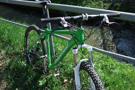 Hier mein brandneues Tundra Race im "Grashüpfer-Design" mit SID Race u. Magura Louise. Ich benutze es mittlerweile als Rennrad - Ersatz.