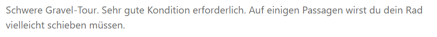 ) nicht mit dem Bike befahren werden darf. Allerdings kann jemand, der noch genauere Informationen hat meine Änderung mit entsprechender Begründung auch gerne wieder Rückgängig machen