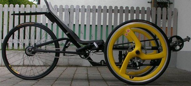 Ist ein Liegedreirad mit Neigetechnik(frei aufgehängt).