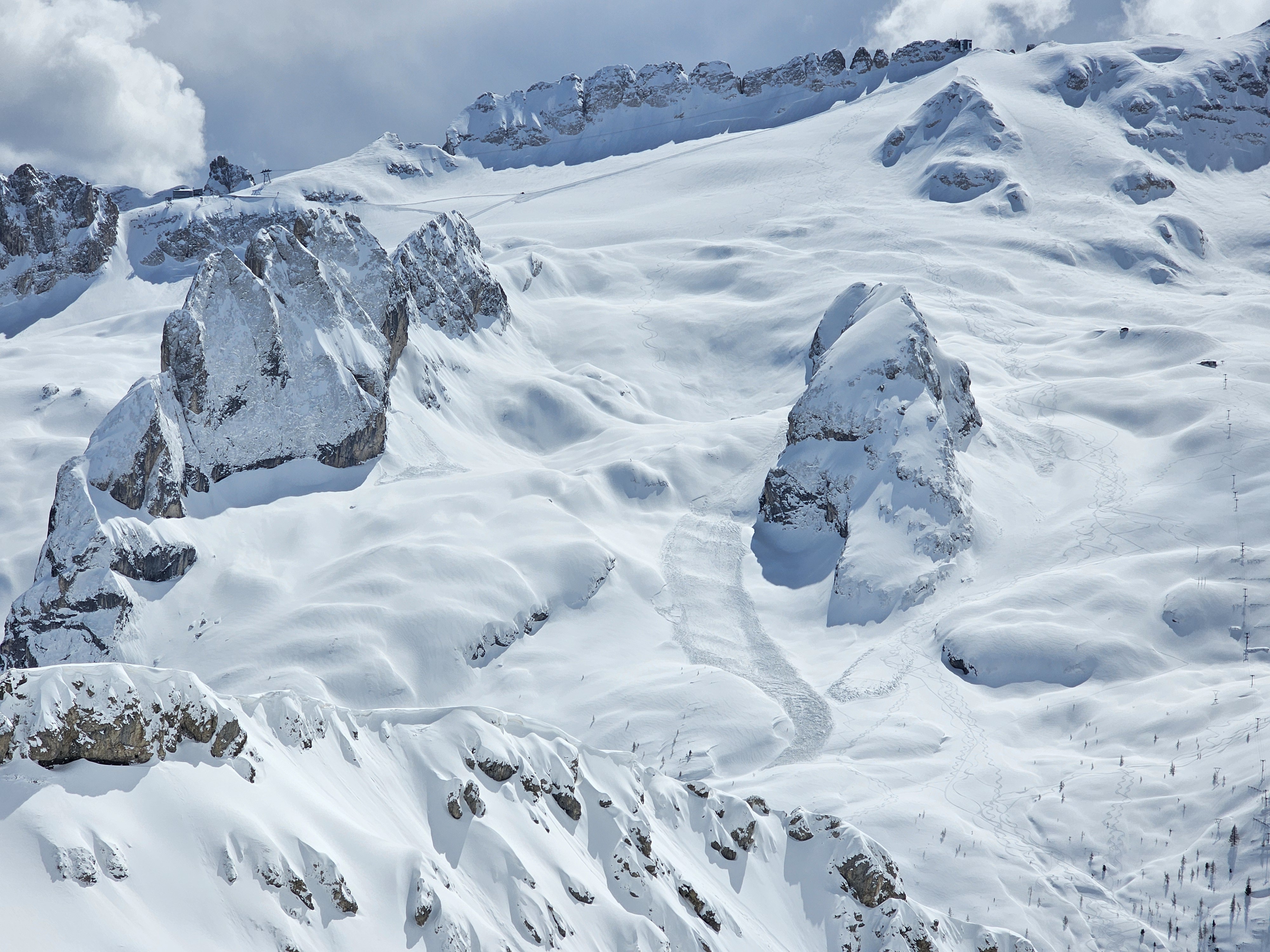 .Eben, die Marmolada ist eigentlich eher ein zahmer und gutmütig flacher Freeride-Berg. Jetzt liegen auf den ganzen "zahmen Routen" halt überall Lawinen drin.Alter Schwede...sind mit den Kids pisteln, aber soviele Lawinen am Marmolada hab ich noch nie gesehen, vor allem weil das ja nicht gerade steil ist![]()
