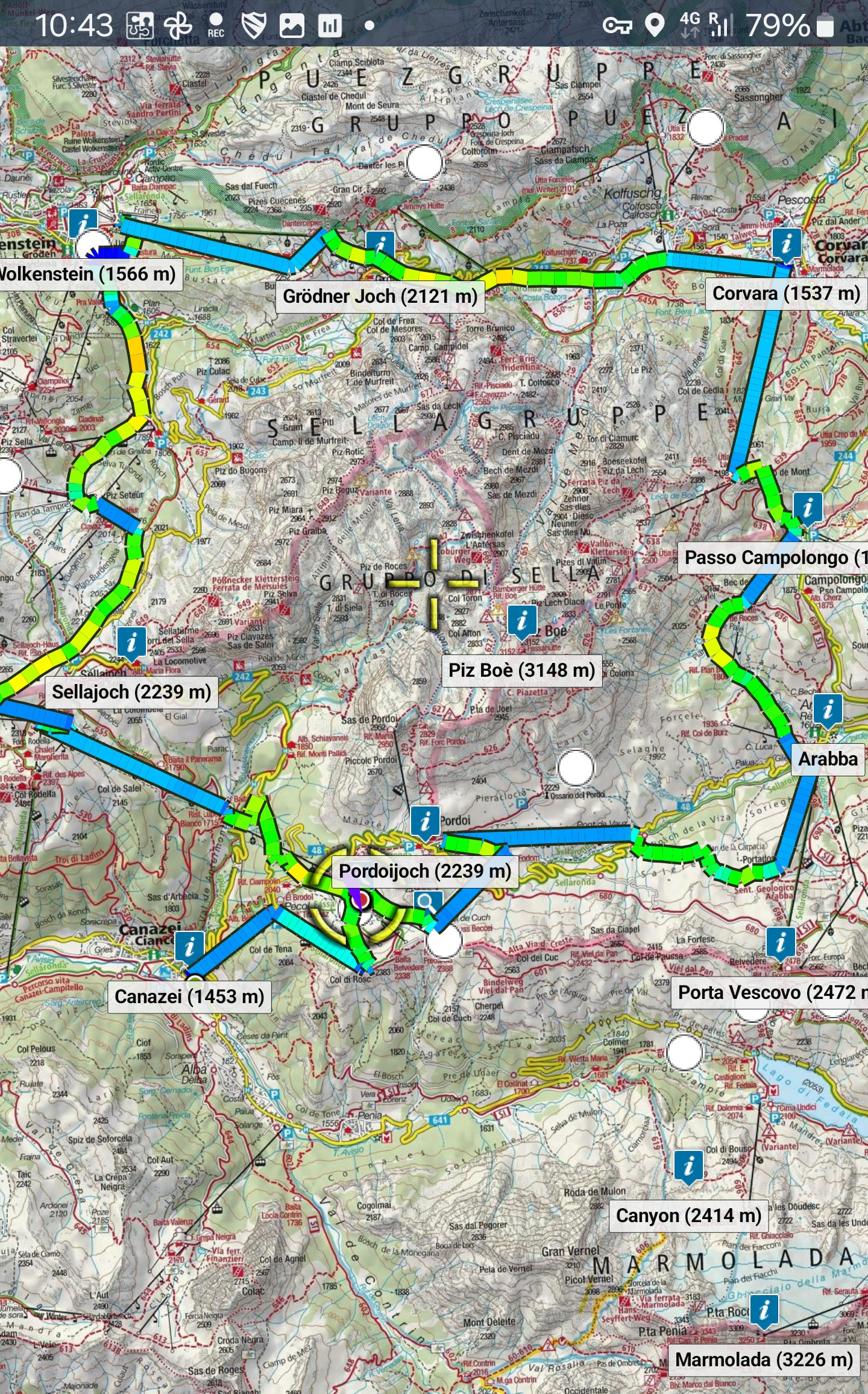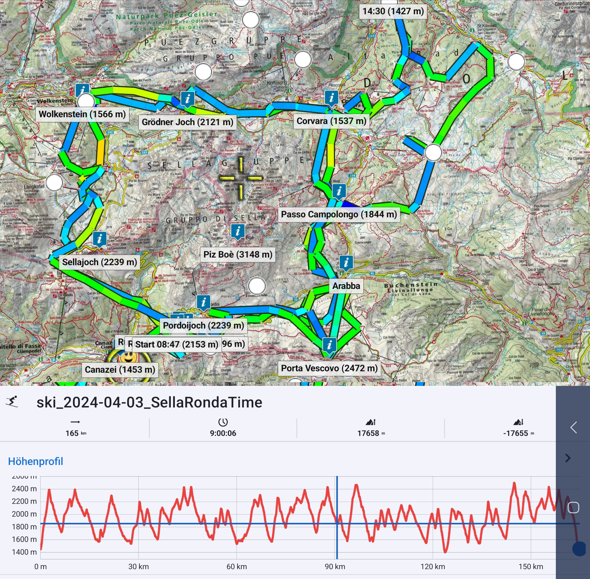 In der heute orangen Richtung im Uhrzeigersinn ging damals sowieso nix durchgängiges rum. Von Arabba zum Pordoi nur mit Taxi und von Pralongia/Cherz übern Campolongo nach Arabba nur Offpiste durch so nen üblen Graben.