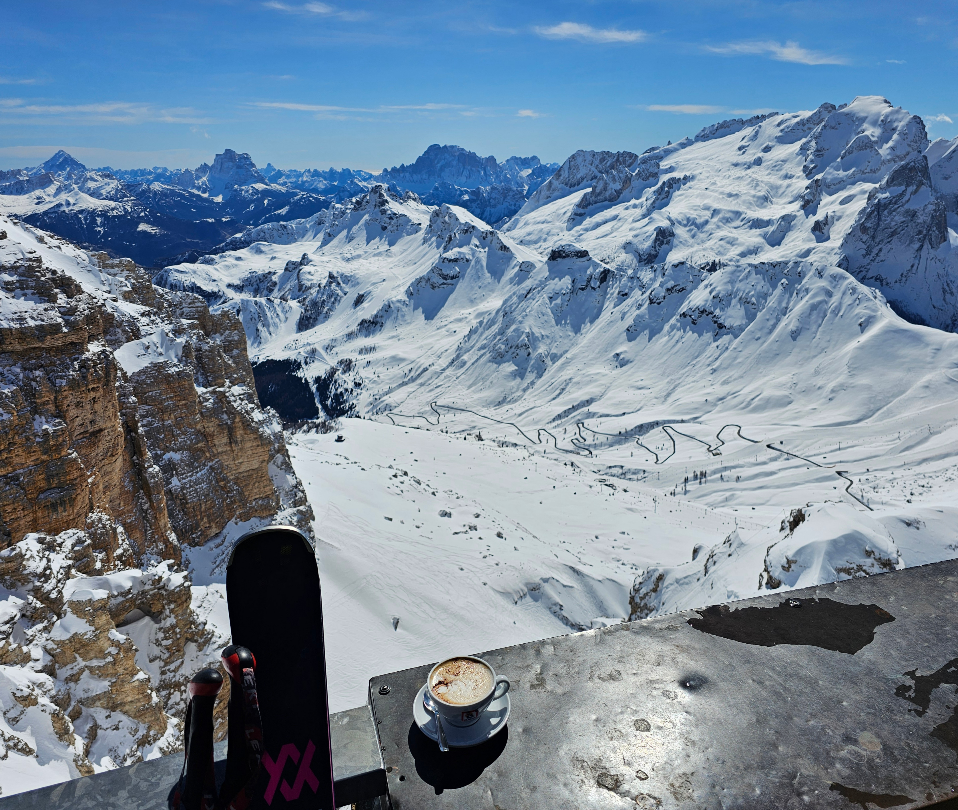 u weils in dem bild so ins auge springt und du auf zahlen stehst: hast du tourenski dabei? dann könntest du noch mit der Punta Penia den höchsten Punkt der Marmolada eintüten.