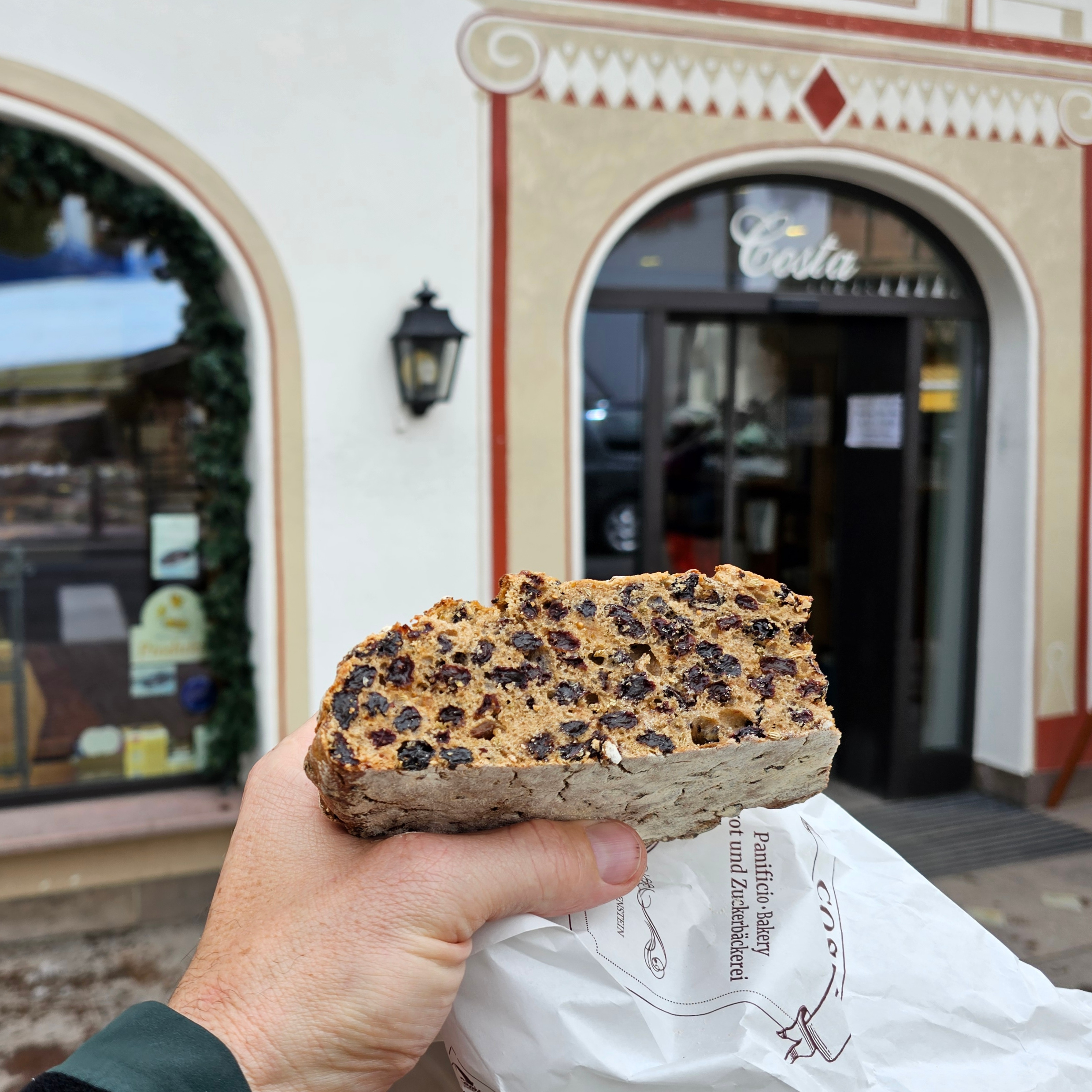 aber du drehst ja gleich zig runden, wird das nicht bisschen über-rosinig ? :-oDarauf ein Rosinenbrot: Pflicht bei jeder grünen Sellarunde in der Bäckerei Costa in Wolkenstein.