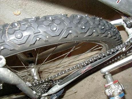 Das einzig leidige ist, wenn man mit den Reifen auf blankem Teer fahren muss, weil vielleicht gerade kein Schnee liegt. Dafür habe ich mir einen ganz billigen Zweit-Laufradsatz gebaut. Einer mit Spikes und einer ohne, so kann man schnell wechseln wenn nötig.