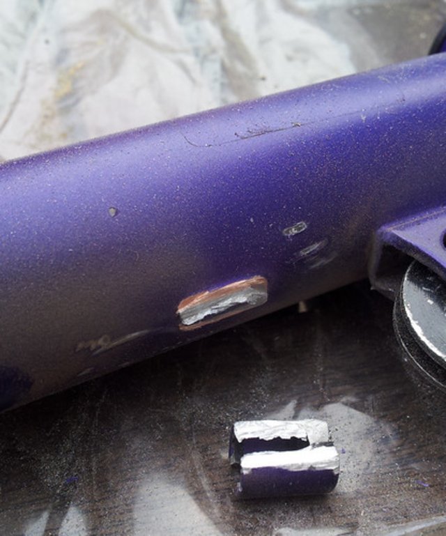 Mit den Schleifteilen vom Dremel war das aber eine Geduldsprobe und ich wäre jetzt noch nicht fertig - hätte dafür 3 Schleifteile verbraucht...diese rosa Scheibchen...