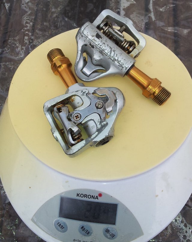 Auch wenn mich das Gewicht bereits begeistert hat, muss mit leichtem Aufwand noch mehr drin sein. Also wollte ich mich mal ans Schlauchwechseln machen und habe noch geschaut, was noch so an leichten Teilen aktuell übrig ist. Da fielen mir Pedale in die Hand: