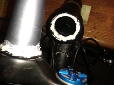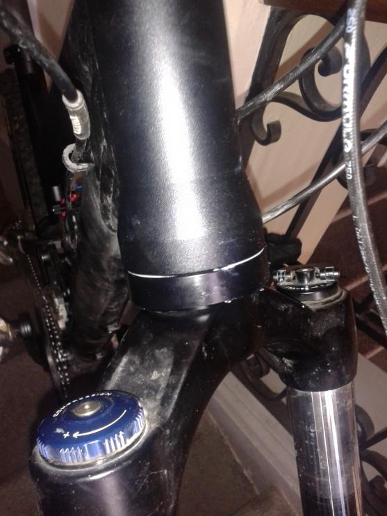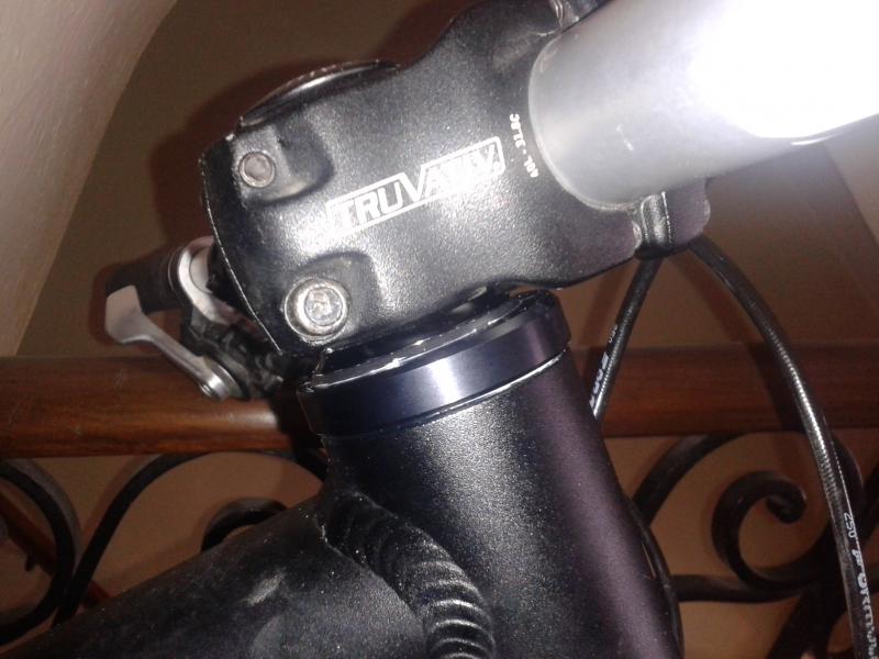 fahre jetzt daher ebenso ohne spacer zwischen steuersatz und vorbau. was aber konstruktionsbedingt bei meinem steuersatz (oben ZS44) dazu führt, dass jetzt bei starkem lenkereinschlag die shifter bzw bremshebel mit dem oberrohr kollidieren :(