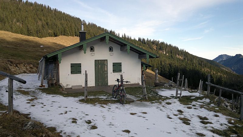 Und eigentlich hätte ich dank @sommerfrische vorgewarnt sein müssen. Aber nein, Eis gibt's doch auf meiner sonnigen Lieblingsherbsttour bestimmt nicht! Tja, da hatte ich die Rechnung ohne die fleissigen Waldvernichtungsgesellen gemacht, die ein Paar Zentimenter Schnee zu ein Paar Millimeter Eis plattgewalzt haben :(.