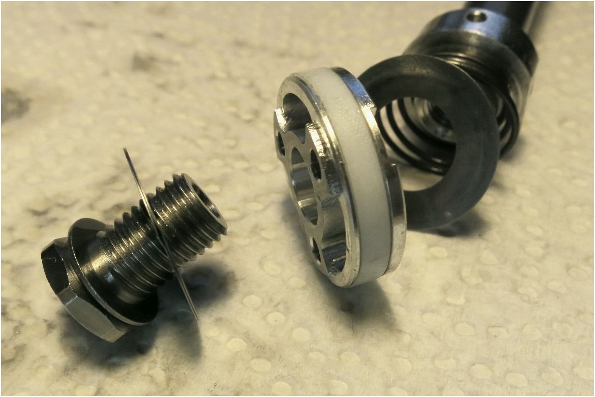 Wenn das der zugstufenkolben ist hast du mit deiner umbau aktion einfach nur die federvorspannung des checkvalves erhöht wenn ich das mit meinem handy richtig sehe... Und das hat keinen einfluß auf die dämpfung ausser die vorspannung ist so hoch das es wirklich extrem schwer auf geht oder sogar komplett zu ist dann hättest du da einen spürbaren einfluss in die dämpfung! Man könnte da einen shimstack verbauen aber das ist sehr komplex und nicht zu unterschätzen da der midvalve stack einen extremen einfluß auf die druckstufe nehmen würde. Bessere bilder und genauere beschreibungen wären gut um genauere aussagen zu treffen. Hat die kartusche einen druckstufenkolben wenn ja den auch noch ausbauen und bebilden und vermessen