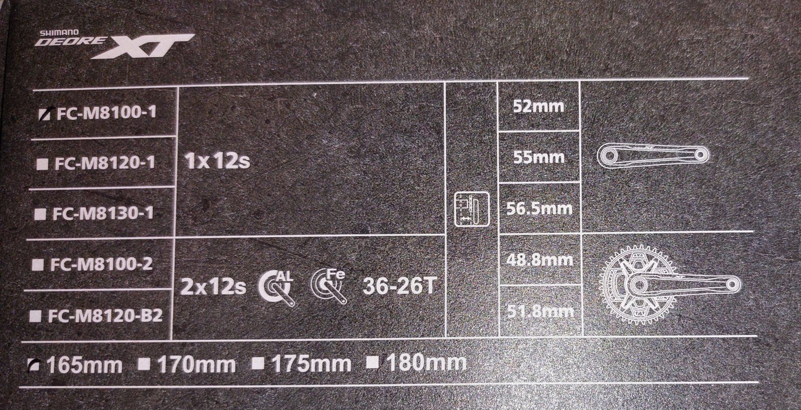 Shimano Kurbel XT FC-M8100 52mm (wie angegeben) plus