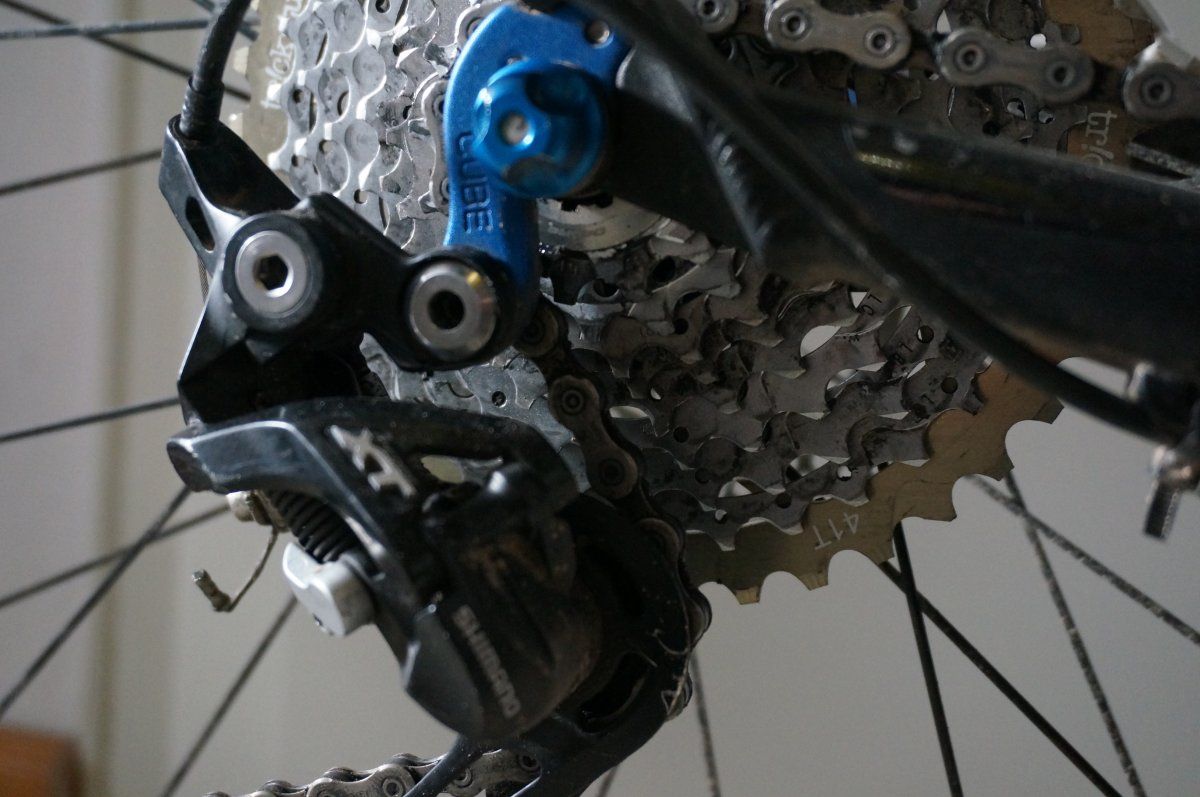 Ergebnis: Die B-Tension Schraube kann auf mittlerer Stellung verbleiben, beim kleinsten 11T Ritzel läuft das obere Schaltröllchen nun deutlich näher an der Kassette. Die Schaltperformance ist deutlich besser.
