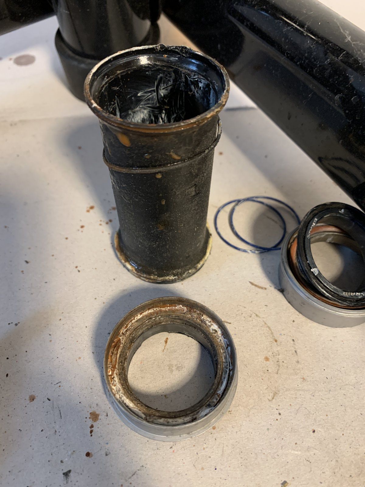 Nach 2 Abenden und viel Gefluche habe ich alle Lager ohne Rahmenbeschädigungen geschafft zu entfernen. Nun stand das Einpressen der neuen Lager an. Leider sind die Lagerpassungen im Rahmen echt mies gefertigt. Haben übles Untermaß, sind zerrieft und auch nicht perfekt rund.