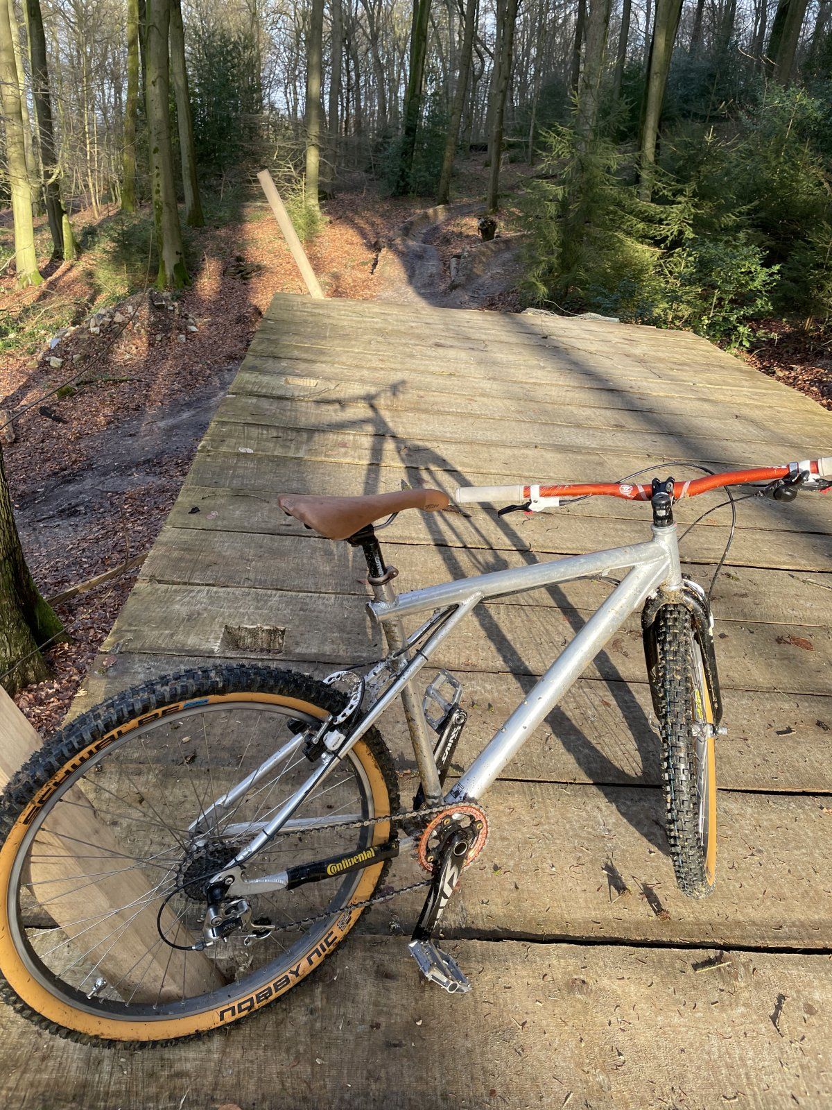 Und mein Originalzustand war ein nackter Rahmen mit Gabel vom lokalen Händler für ca. 600 Mark, hatte die Wahl zwischen dem und einem Cannondale. Dann mit Teilen von meinem alten Rad aufgebaut und nach und nach verbessert, als ich Geld für eine