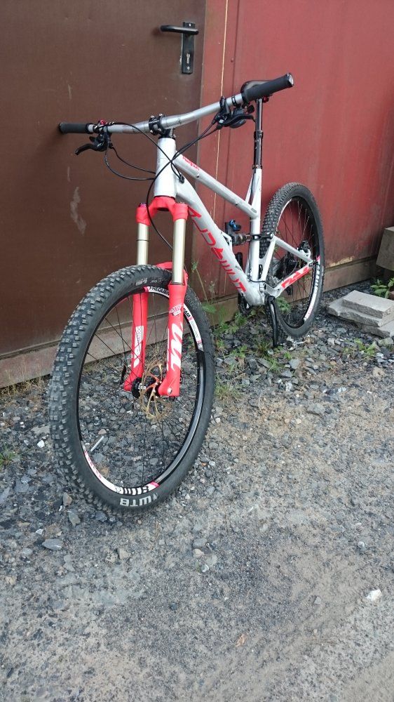 Erster Eindruck Testfahrt: :-) Das Ding macht echt viel Spaß! Einige Teile werden sicher noch getauscht, aber das wird sich mit der Zeit ergeben. Die Geomentrie ist sogar mit den 160mm an der Front gut, zumindest was ich auf der kurzen Runde an Eindrücken sammeln konnte. Sonst nur Kleinigkeiten... die Dämpfer noch zu weich, Bremse hinten nochmal entlüften, der Lenker ist echt breit, mal sehen ob ich mich daran gewöhne. Die Schaltung kenne ich ja noch gut, war einige Zeit an einem Epic (Ja es gab damals Gründe diese abzubauen).