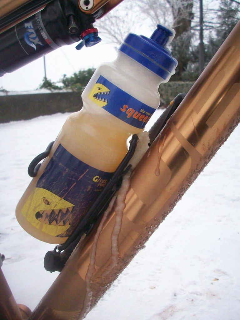 Im Flaschenhalter friert es immer ein. Heute hatte ich zu wenig dabei. Die Tour ist was länger geworden und so hatte ich die letzte Stunde nix mehr zu trinken, obwohl es ja sowieso zu Eis geworden wäre.