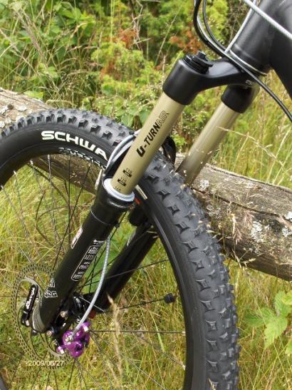 Race Face Diabolus, 200er scheiben, muddy marys, meiner delle am unterrohr und dem blanken alu an der kettenstrebe