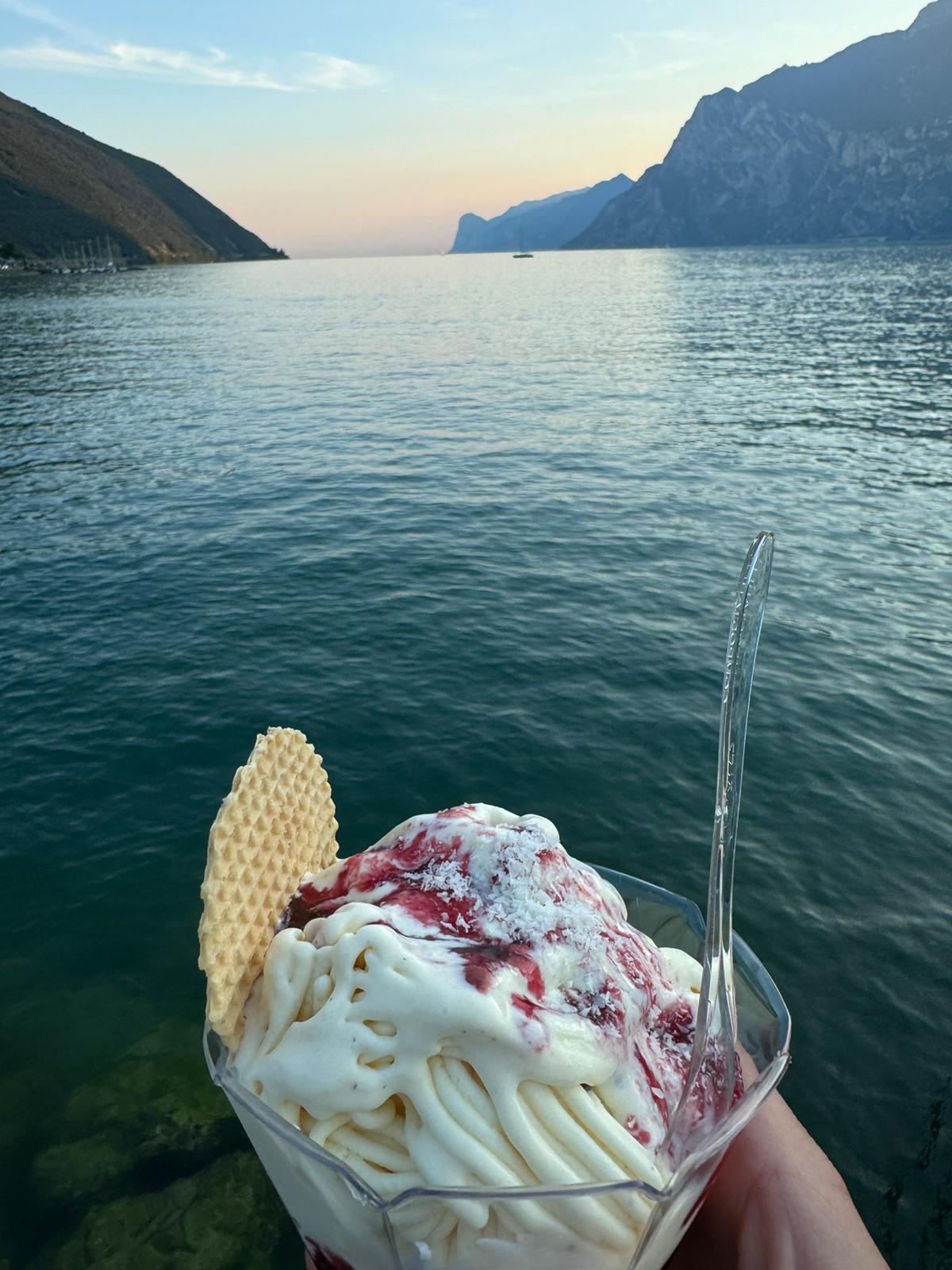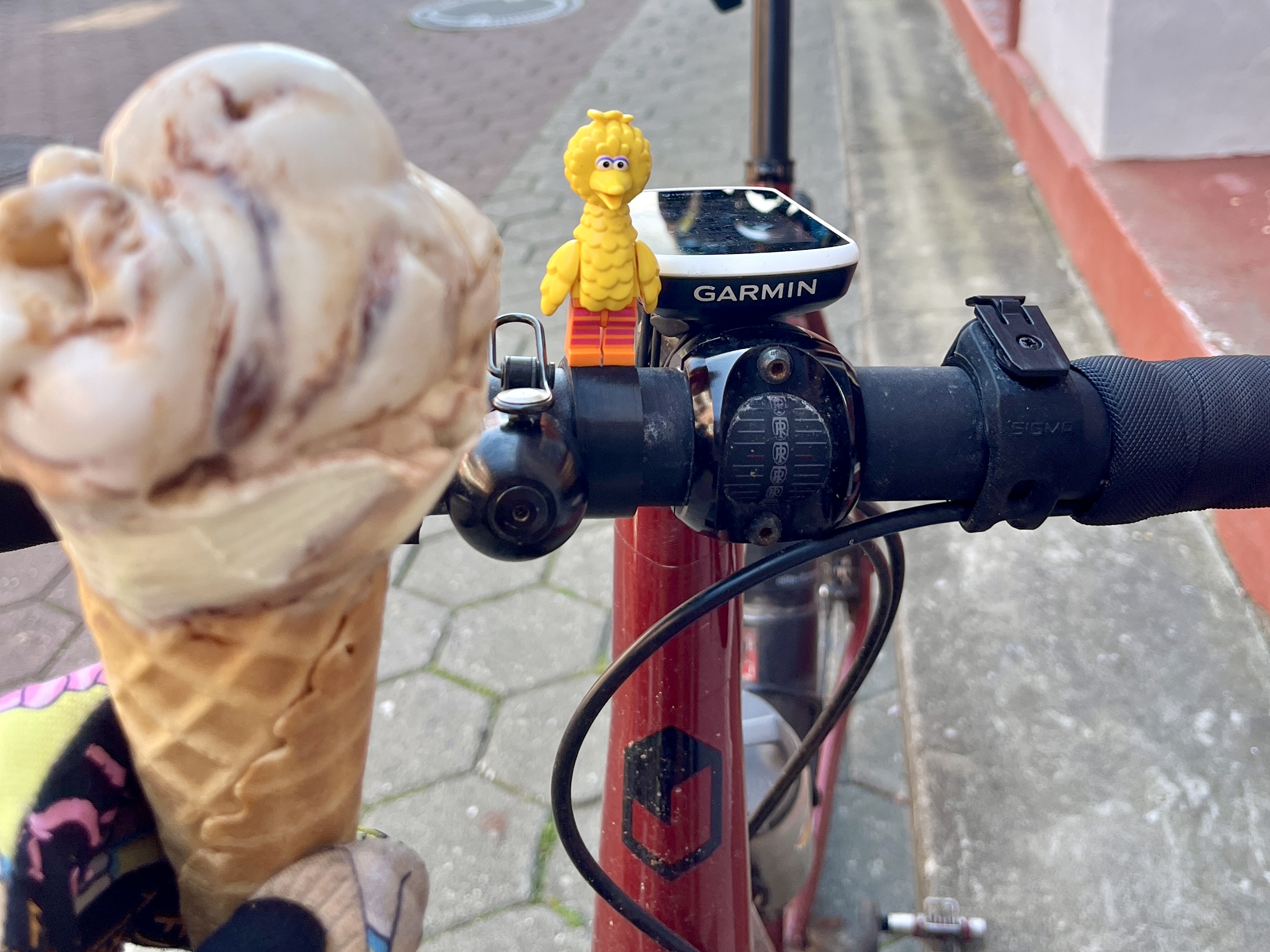 Das Eis ist egal, aber die Schwedenklamotten sind lässig.Heute in der Waffel: Schokolade/Chili und Blaubeer/Schmand