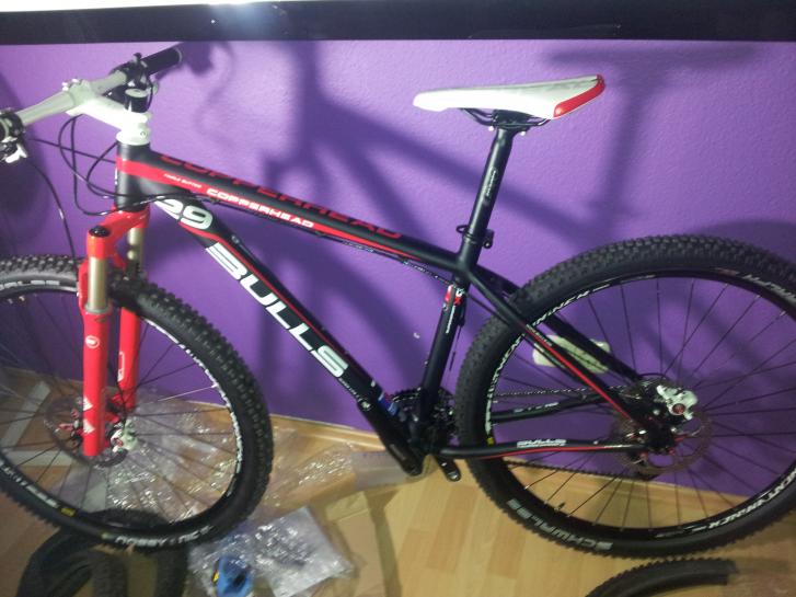 Grazie. War auch so schnell genug auf den Beinen - 7 Tage von der Entscheidung ein 29er zu kaufen bis zum fertigen Aufbau. Die Gabel is ne Reweleschn mit 140mm. Gesamt wiegts mit den Reifchen so um die 13,2kg, kommt dann in Bälde halt noch n halbes Kilo druff. So a richtige Drecksau brauch ja au ä bissl Fleisch auf den Rippen, net wahr.