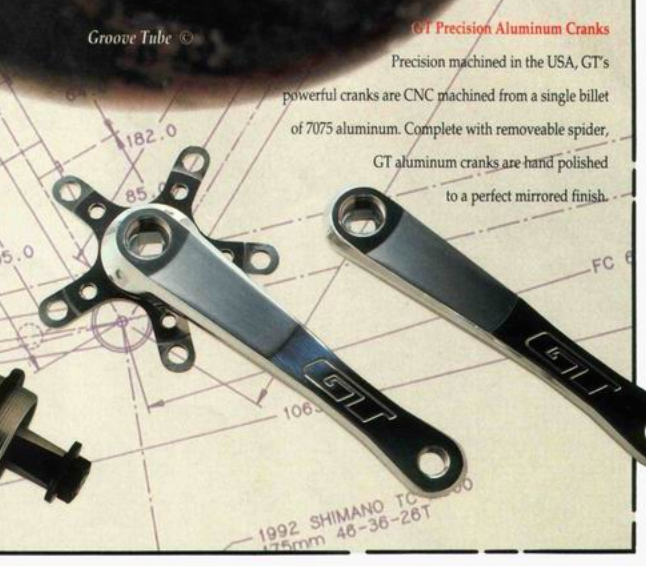 die titanversion hab ich nie gesehen. vermutlich wird es wenige käufer damals gegeben haben, da sie sicher höher eingepreist war als die ohnehin schon preisintensive aluvariante der gt tech shop kurbel.Sehr cool. Hast du mal die Titankurbel gesehen? Gabs die überhaupt oder blieb es nur bei dem Katalogfoto?