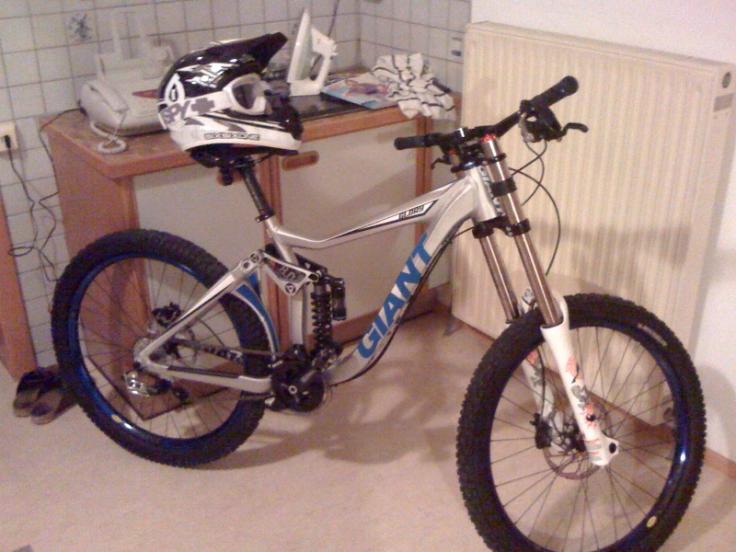 So hier mal meine kleine Giant-Sammlung. Leider hats Glory momentan keine Bremsen mehr. Eigentlich gehören die roten Clegs ans Glory. Sobald die neuen Clegs fürs Reign da sind, wird wieder umgebaut.