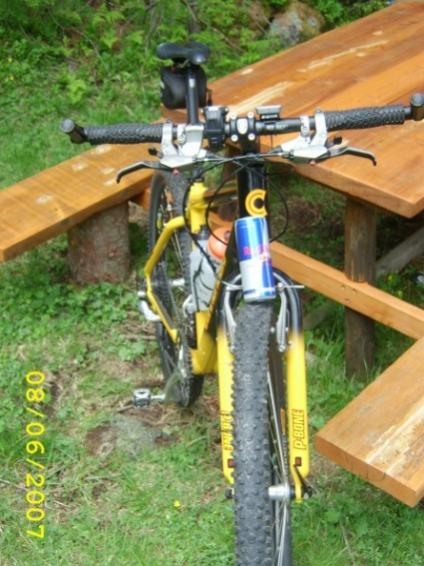 so noch mal zwei bilder bei Tageslicht... das mit den gelben Griffen hab ich jetzt schon oft zu hören bekommen... :lol: Dabei find ich die irgendwie echt angenehm zum fahren... naja ich werd noch nen gelben Flaschenhalter an das Baumarkt fully baun... Glaub Sattel, Griffe und Pedale hätt ich rot machen sollen. Gelbe Reifen hab ich nirgends auftreiben können oder weiss da jemand wo ich sowas herbekomme? Bei ebay gibts zwar welche von KENDA aber die find ich jetzt nicht so toll... bzw. weiss ich nicht wie gut die Qualität ist... Oder gibt es irgendwo rote ??