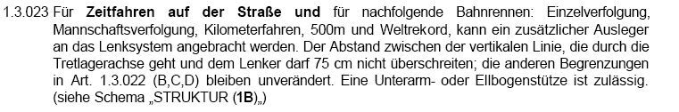 beim zeitfahren gibt es eine regel das man höchstens einen abstand von 75 cm zwischen sattel und lenker haben darf
