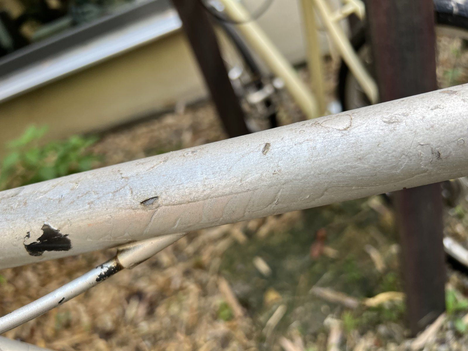 habe hier zwei Rahmen und eine Gabel rumliegen. Liegen schon sehr lange hier auf dem Dachboden und ich finde keine Zeit. Bei beiden ist der Lack schäbig und aus der Dose, Gabel sowieso. Keine Beulen, Dellen, Löcher.