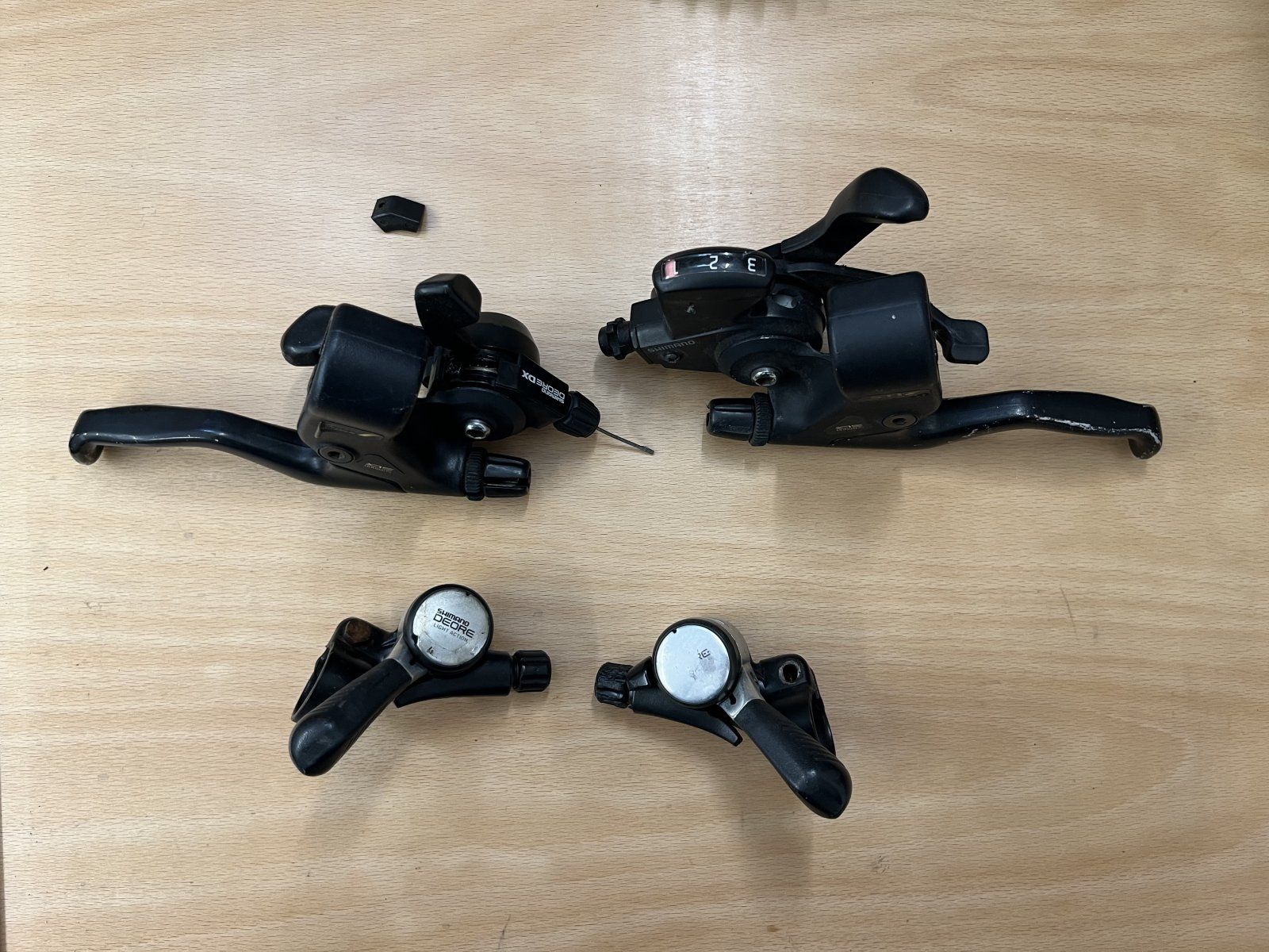 Prinzipiell könnten auch Vorbau, Lenker und DX Kurbel und Umwerfer und XT Schaltwerk gleich dran bleiben. Damit ich mich nicht ärgere sollte ich demnächst mal wieder einen netten Vorbau mit Kabeldurchführung unten brauchen und dafür Geld in die Hand nehmen müssen, und auch ansonsten, wäre 20€ für die am Bild noch zu sehenden Teile auch nett. Natürlich lässt sich über alles reden, irgendwo liegt sicher auch noch ein Satz DX Cantis dafür.