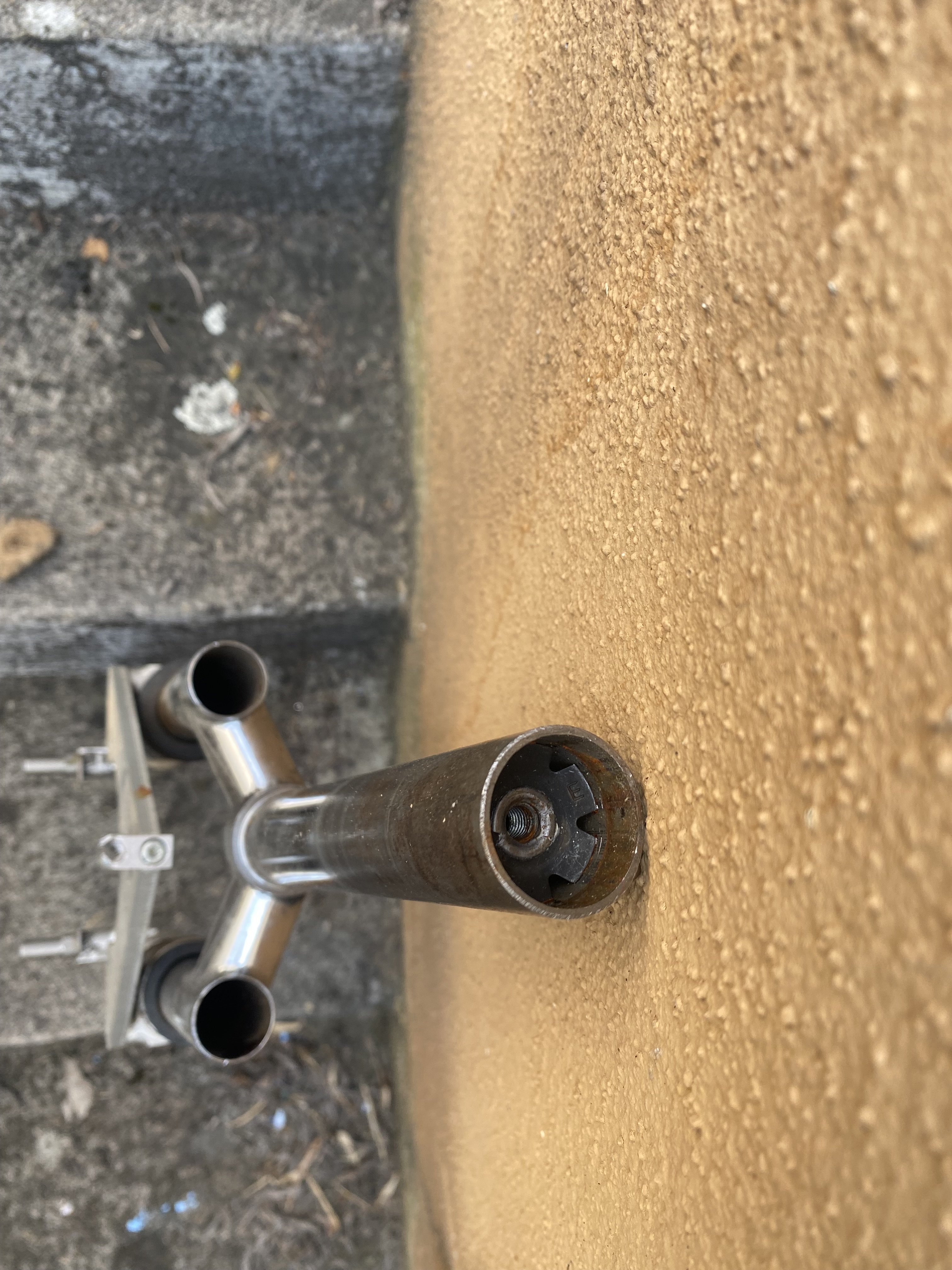 ja, er ist technisch intakt, ja alle gewinde sind heil, ja er ist eloxiert, ja er hat eine oberrohrdelle von hermes o_O (und seitdem verstaubt er), ja er ist leicht.