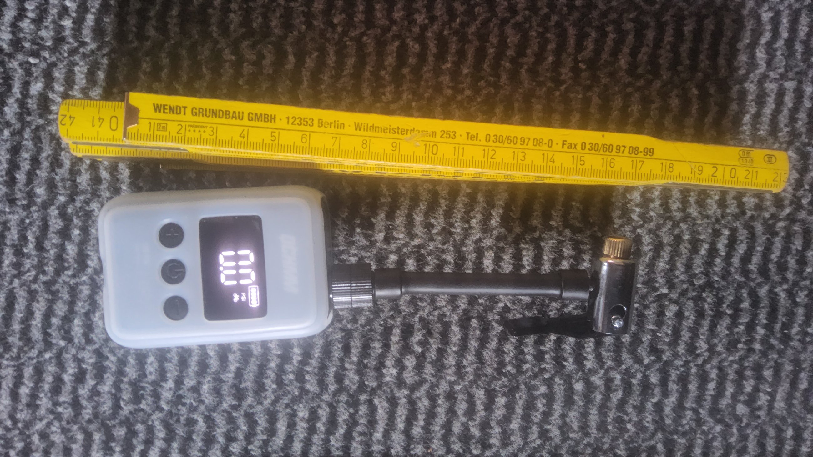 Genau wie beim Gerät von Muc Off in unserem Mini Akku Kompressor Test ist ein recht kleines Monochrom-Display verbaut, das aber dank klarer Gestaltung gut ablesbar ist. Vor allem die Ziffern für die Druckangabe werden groß genug dargestellt, um sie auch mit einiger Entfernung gut lesen zu können. Montage und Handhabung der Verlängerung klappen problemlos und zuverlässig.