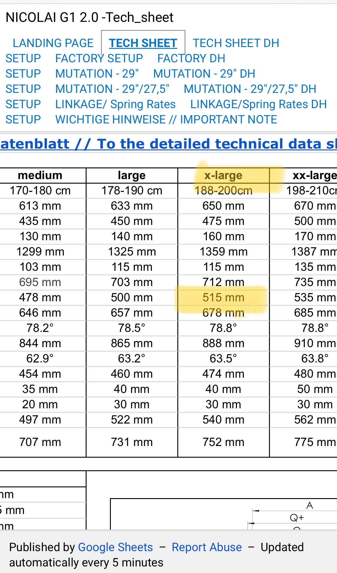 . Die Zahlen ganz oben sind nicht der Radstand, sondern die empfohlene Körpergröße. Der reale Reach ist mit Spacerturm und dem flachen Lenkwinkel eh nochmal ganz eine andere Nummer.